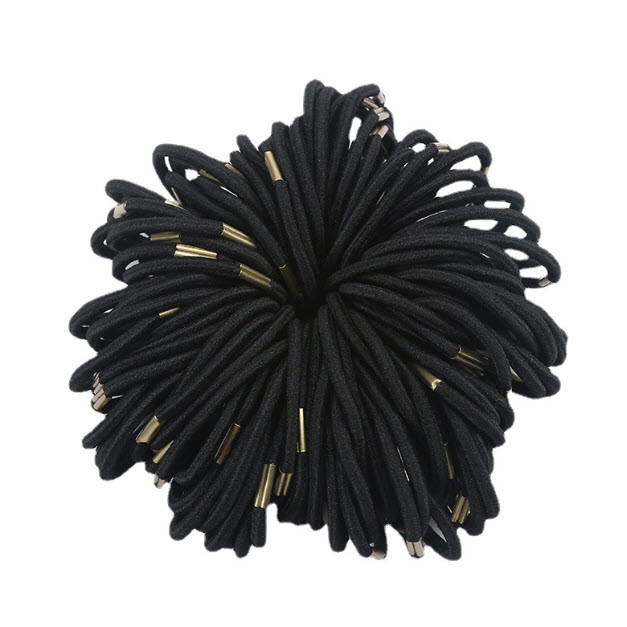 S0519 x 20ชิ้น ยางรัดผม สีดำ มีข้อทอง ยางรัดผมเกาหลี ความยืดหยุ่นสูง ยางมัดผม