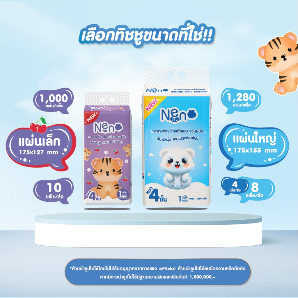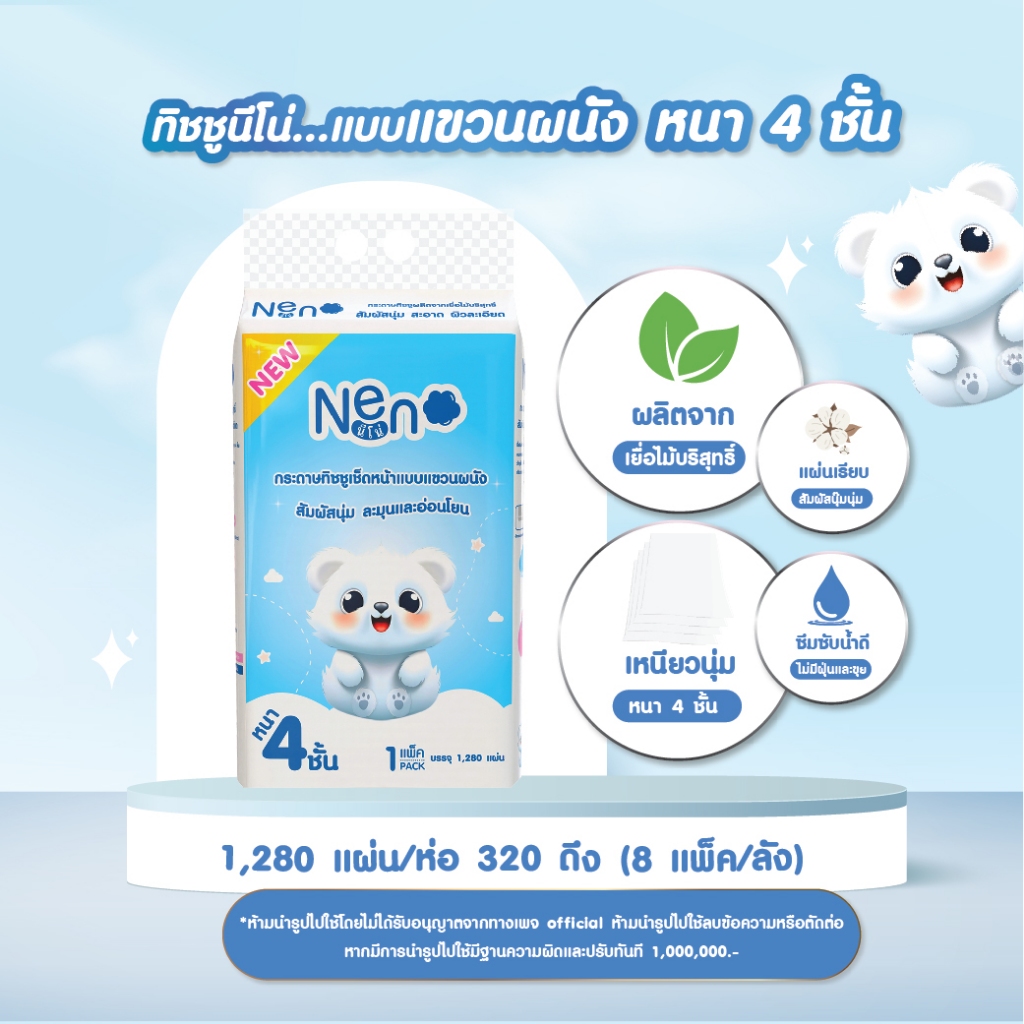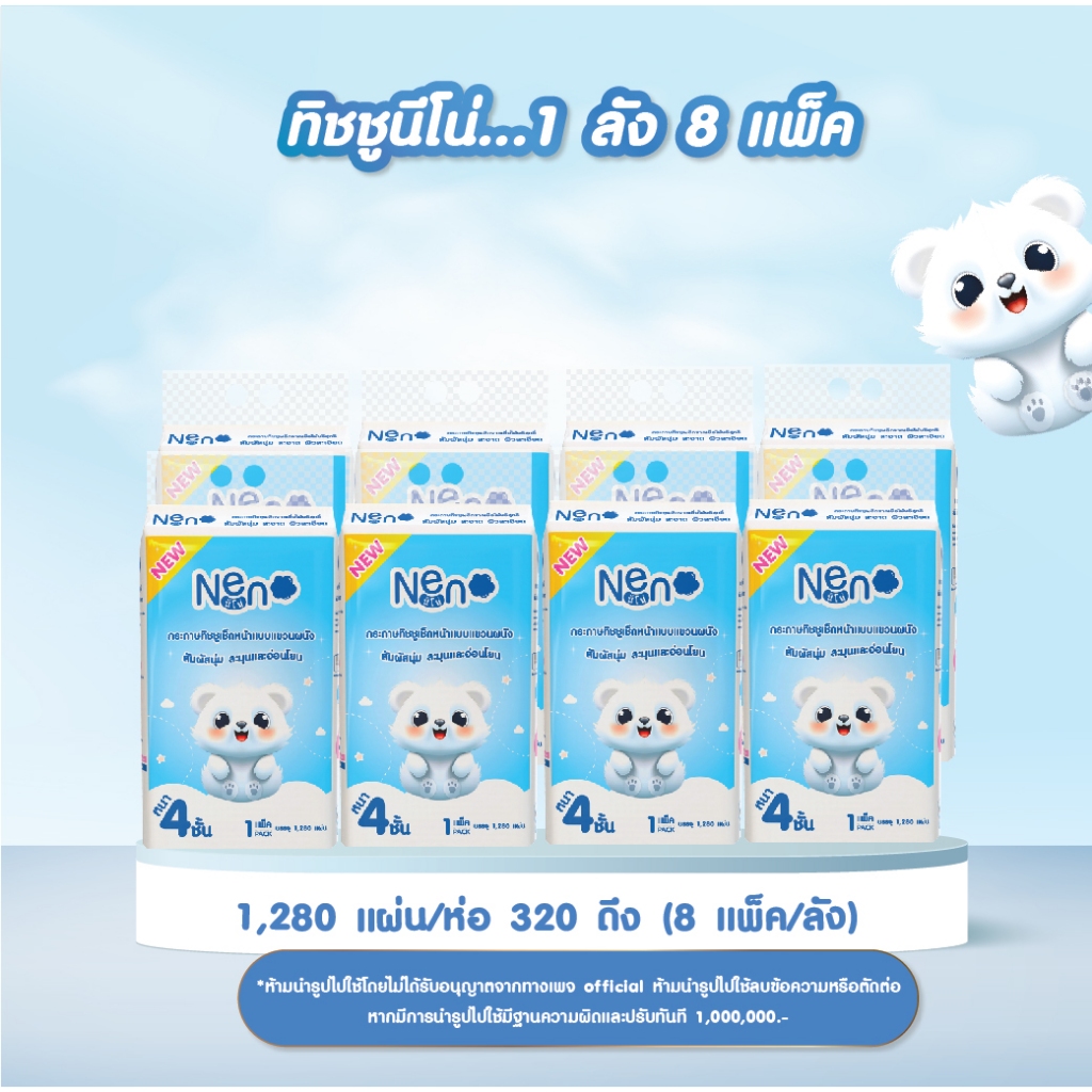 Neno หมีขาว [ ยกลังใหญ่ ] 1 ลัง 8 แพ็ค กระดาษทิชชูแบบดึงแขวนได้หนา 4 ชั้น 1 ห่อ 1,280 แผ่น 320 ดึง