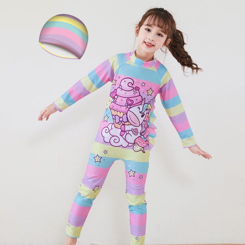 ชุดว่ายน้ำเด็กผญ ลายการ์ตูนคุณภาพสูง เนื้อผ้านุ่มสบาย ระบายอากาศดี แห้งเร็ว ปกป้องผิวจากแสงแดด มีหลายขนาดให้เลือก