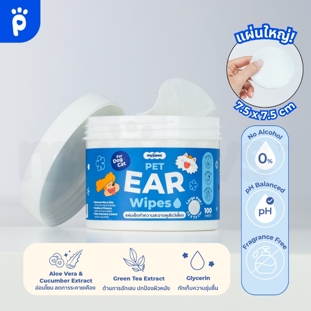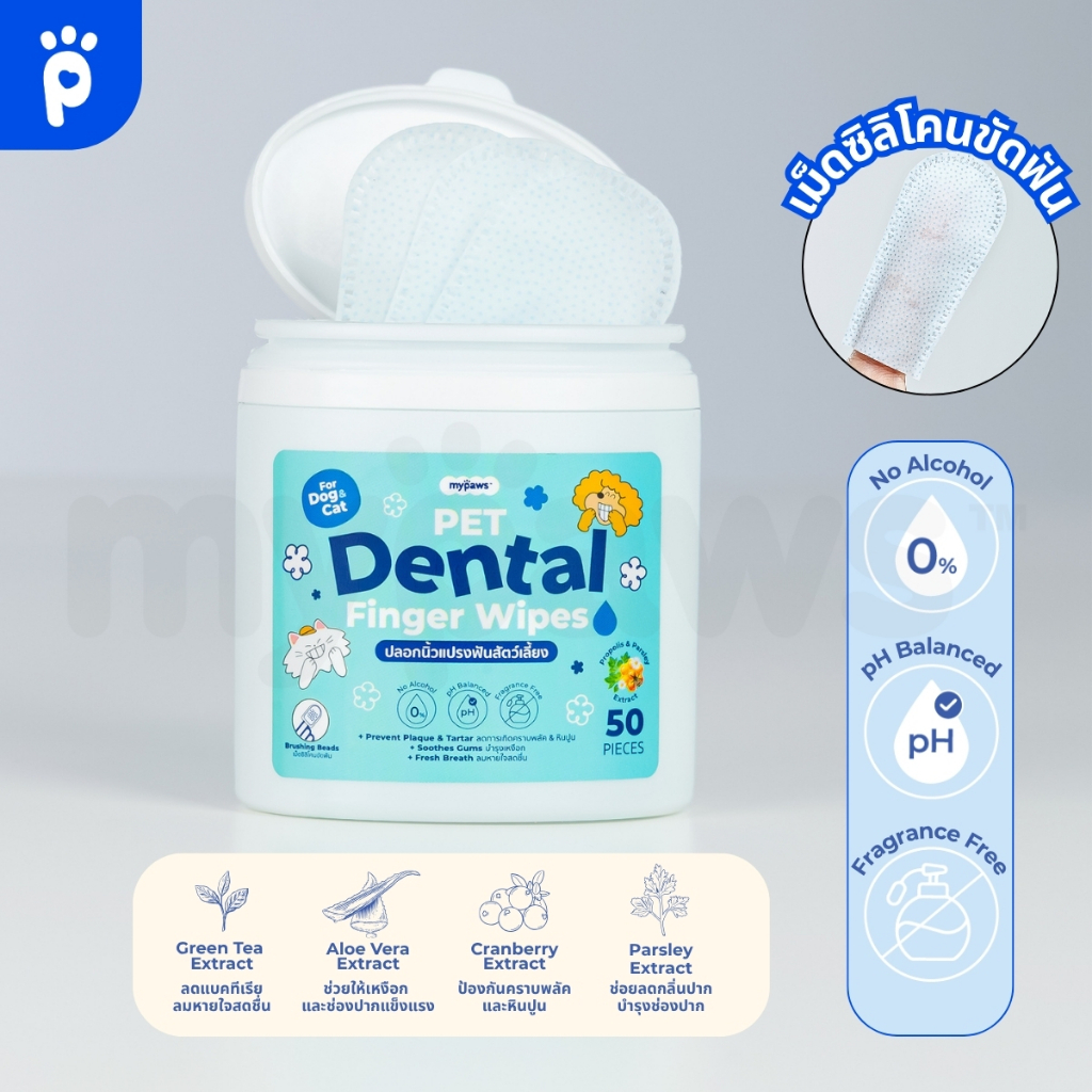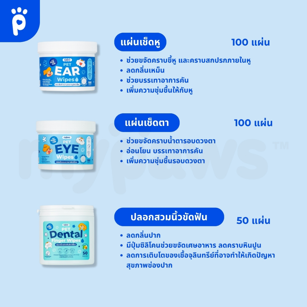 My Paws แผ่นเช็ดหู เช็ดตา ขัดฟัน สำหรับสัตว์เลี้ยง อ่อนโยนไม่ระคายเคือง ใช้ได้ทุกวัน ใช้ได้ทั้งน้องหมา น้องแมว