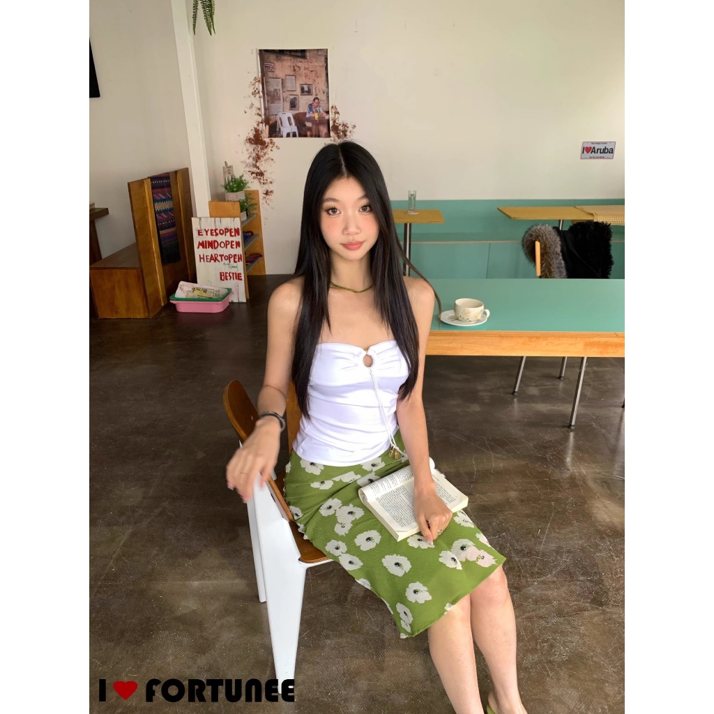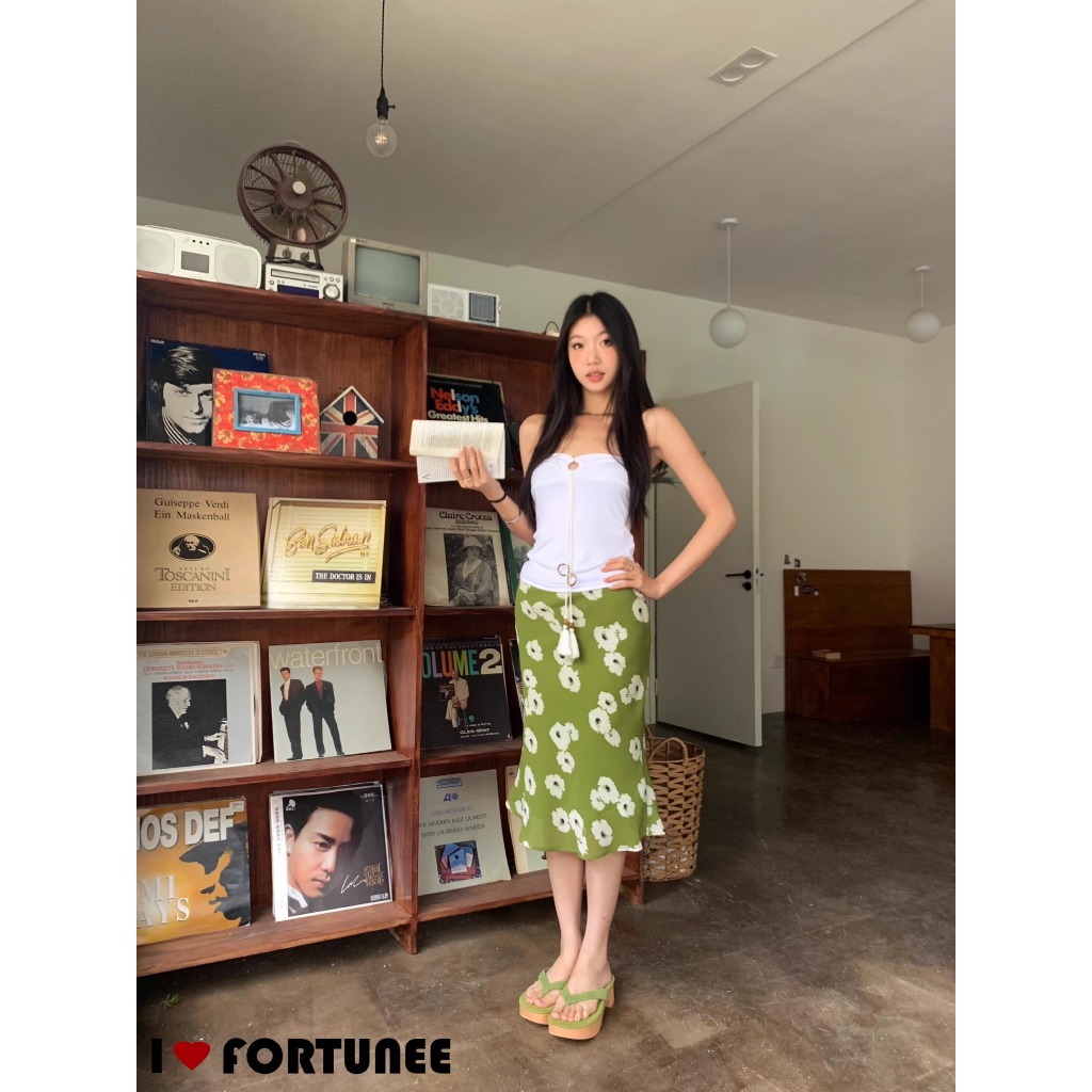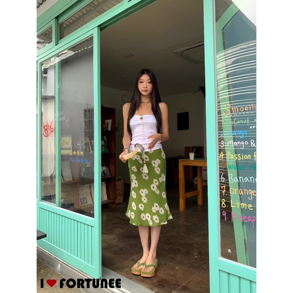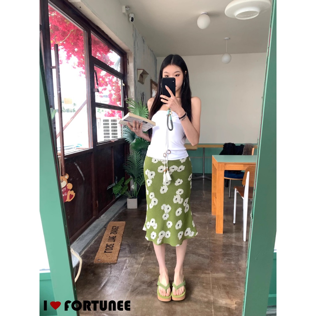 ❣Fortunee ❣ กระโปรงทรงเมอร์เมดสีเขียวลาบดอกไม้ ดีไซน์เแพาะจากFortunee แต่งจีบเพิ่มมิติ