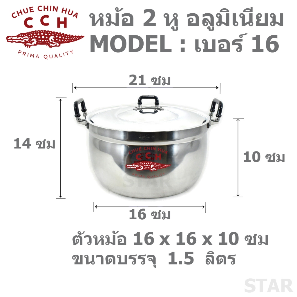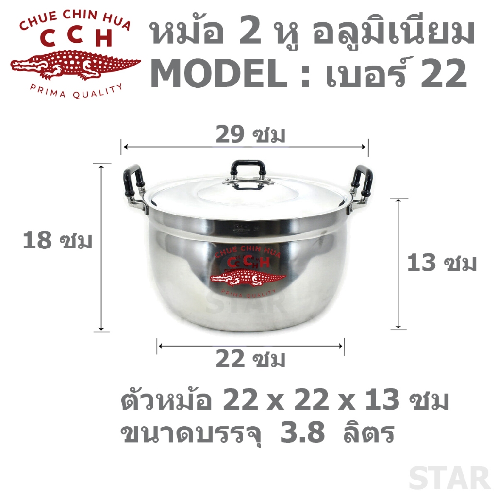 ตราจระเข้ หม้อ 2 หู หม้ออลูมิเนียม 2 หู หม้อข้าว CCH หม้อต้ม หม้อแกง หม้อสองหู เบอร์ 16 18 20 22 24 26 28 30