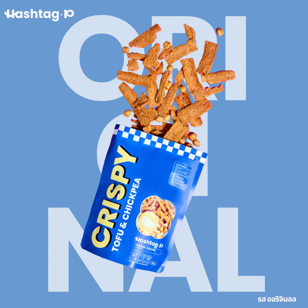 (3ซอง) HASHTAG P ขนมคลีน ขนมโปรตีน ฟองเต้าหู้ และ ถั่วชิคพี อบกรอบ ไร้น้ำมัน รสออริจินอล โปรตีนสูง16 g