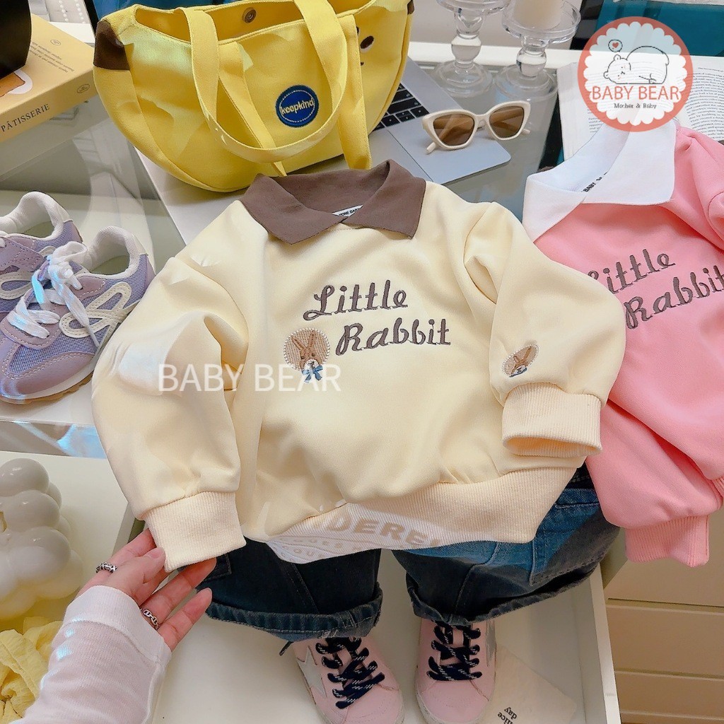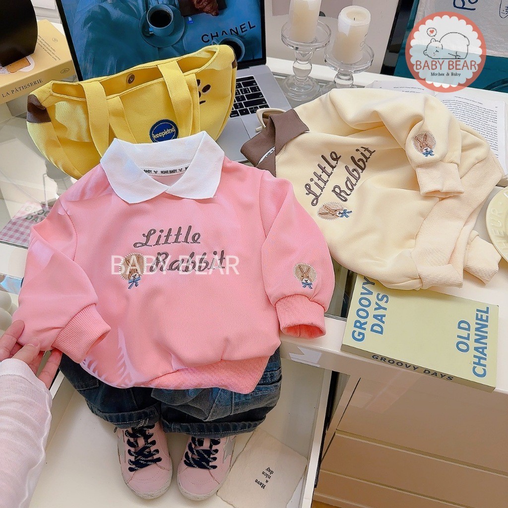 ใหม่ เสื้อแขนยาวเด็ก เสื้อกันหนาวแฟชั่นน่าหนาว คอปกแขนยาว ปักลายกระต่าย