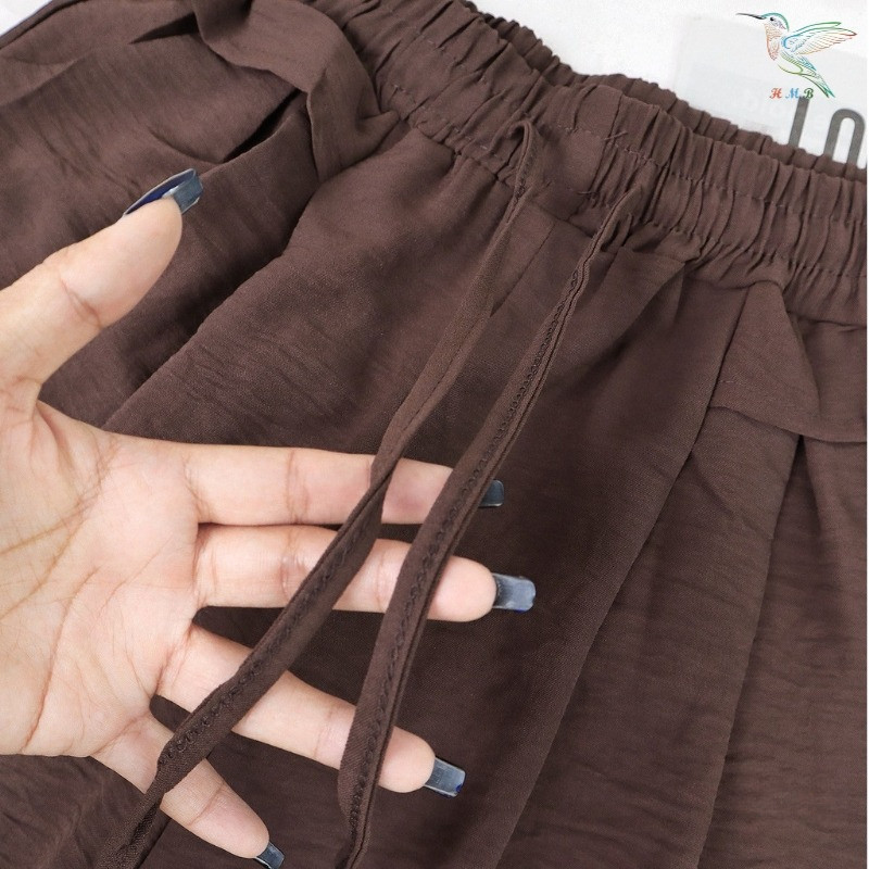 HMB® กางเกงขายาวแฟชั่น 8ส่วน ทรงขากระบอกใหญ่ ปลายขาบาน เอวยางยืด ผ้าไหมเทียม เนื้อผ้านิ่ม ดีไซน์สไตล์เกาหลี p813#