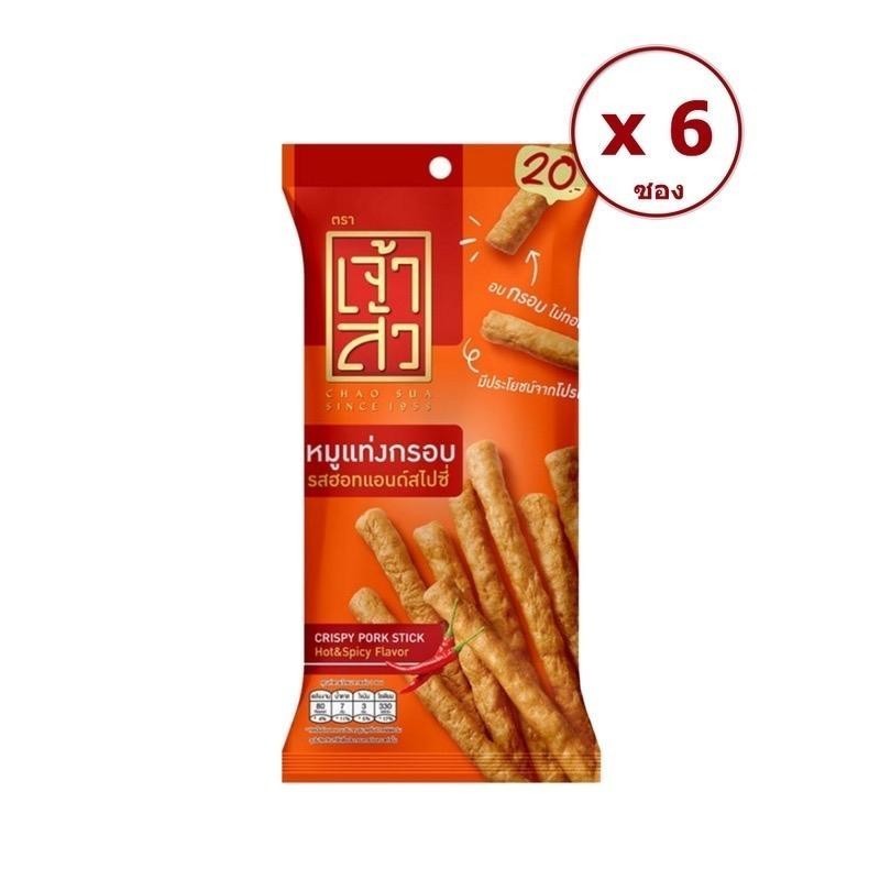 [ยกแพค 6 ซอง ] Chao Sua เจ้าสัว หมูแท่งอบกรอบ 18 กรัม