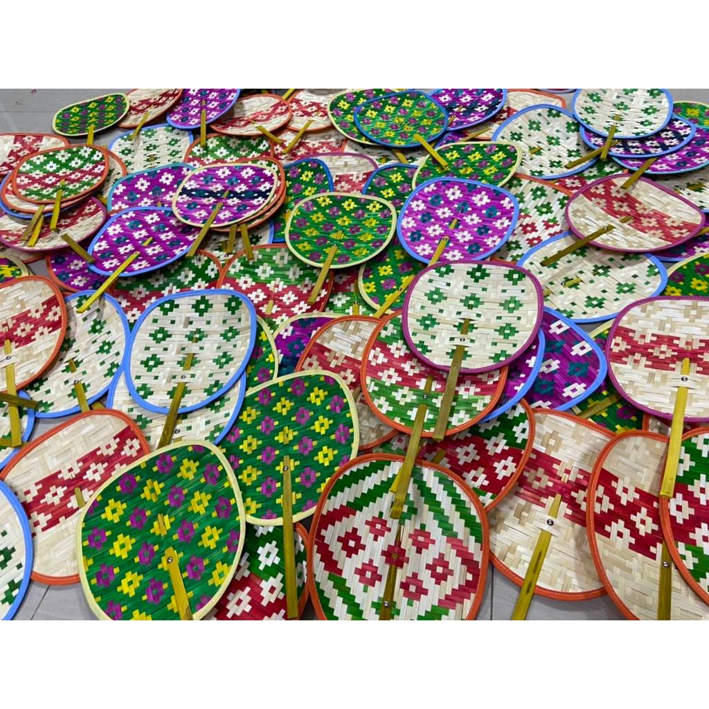 พัดสานไม้ไผ่อย่างดี (ขนาด 7-10 นิ้ว) ลายสวยๆ (เย็บขอบสี) ลายอาจเปลี่ยนแปลงได้ตลอด