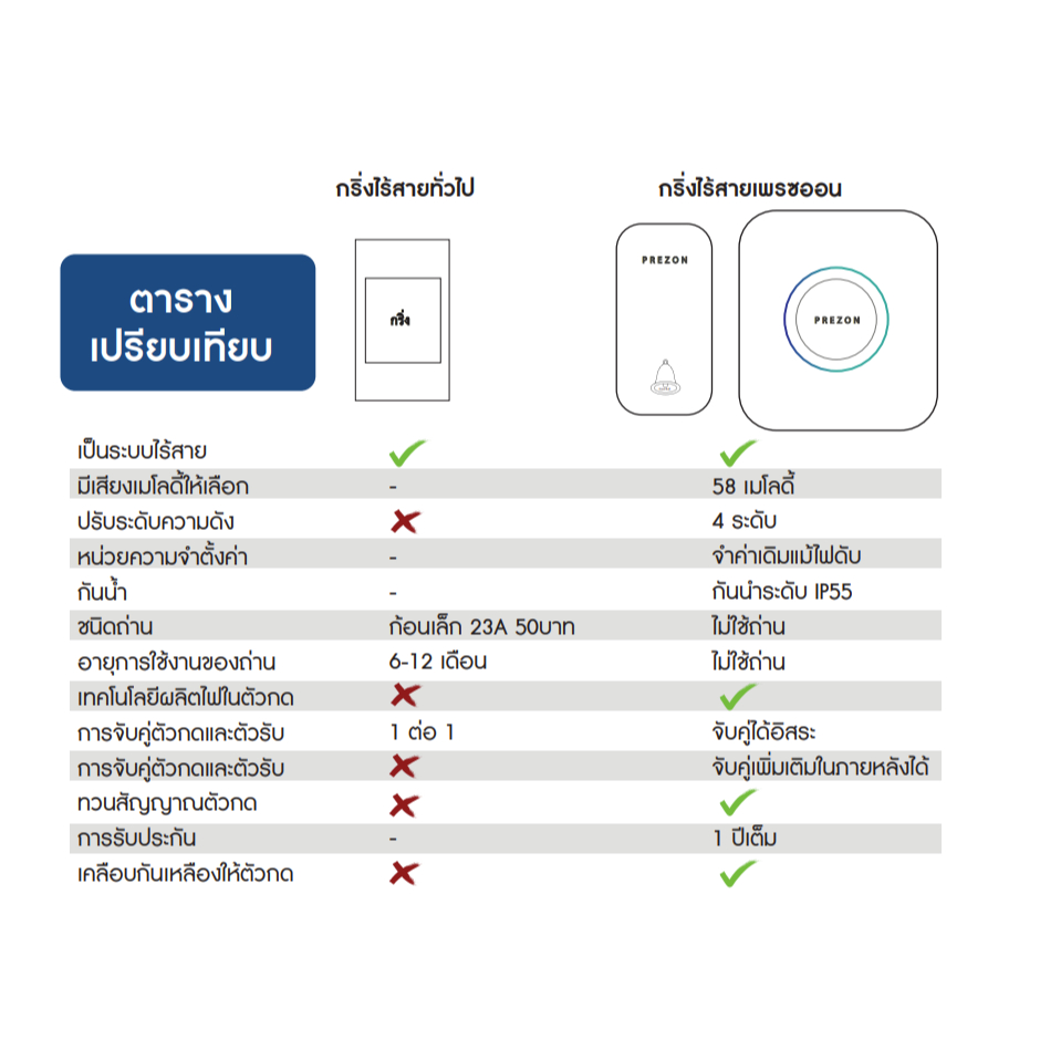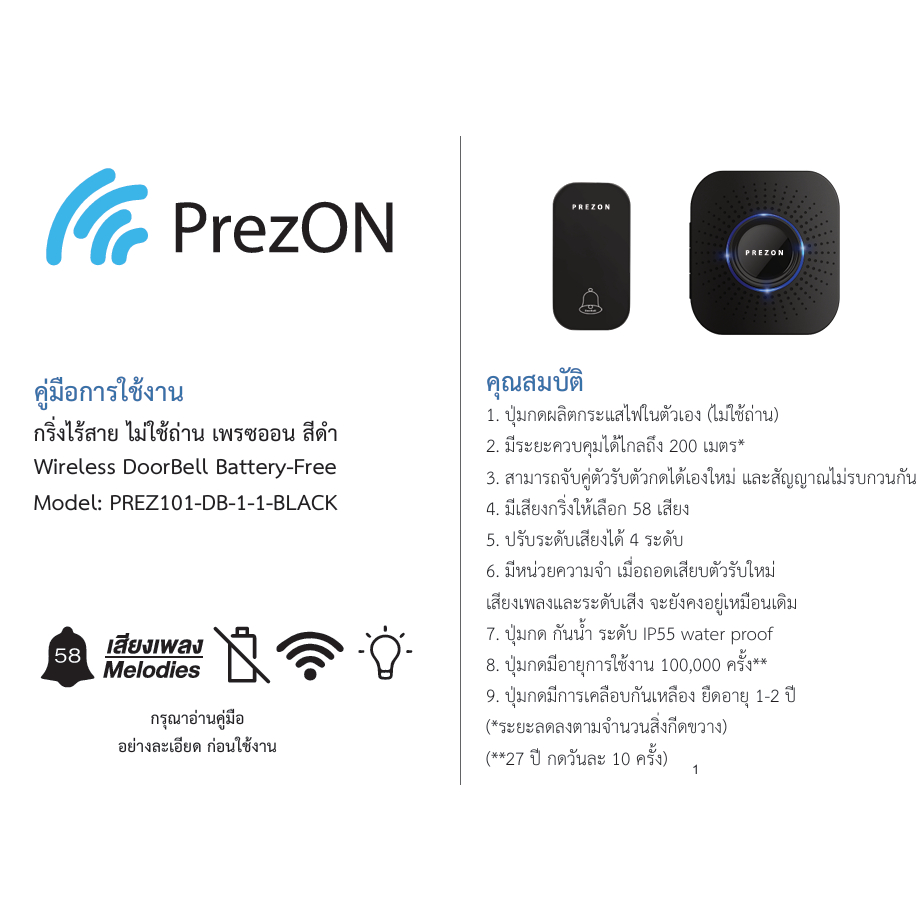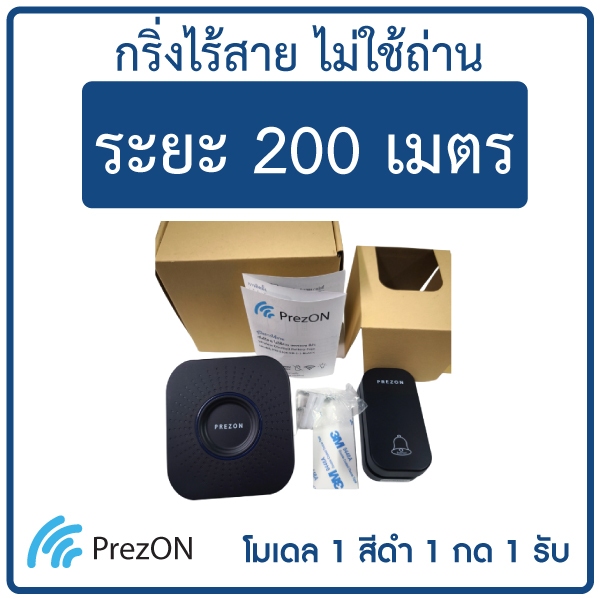 กริ่งไร้สายสีดำ ไม่ใช้ถ่าน ทนแดดกันน้ำ โมเดล 1 - ออดบ้าน กริ่งประตูไร้สาย ออดไร้สาย : เพรซออน PrezON
