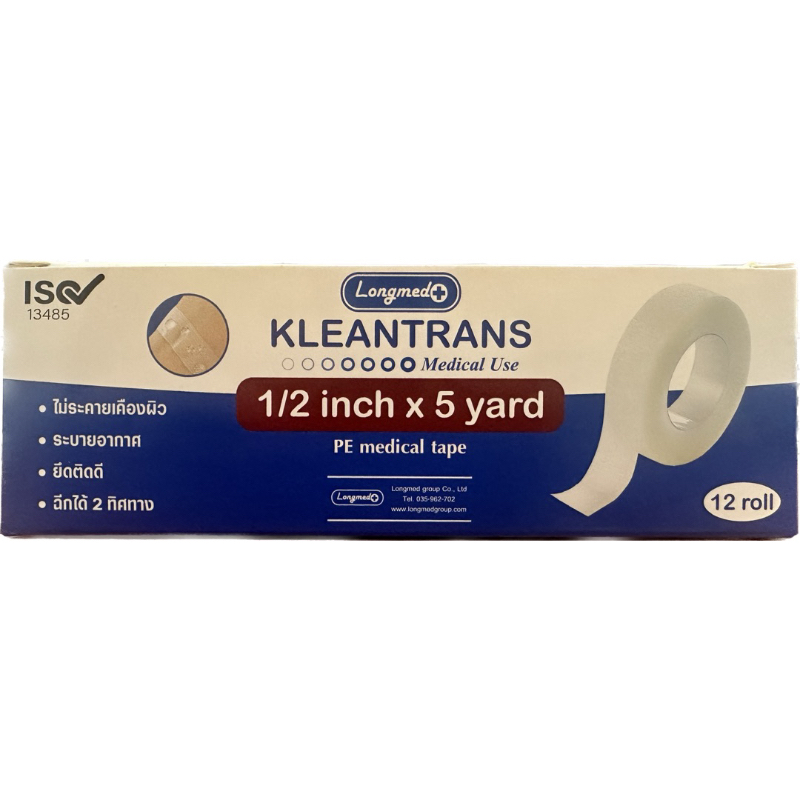 [ขายยกกล่อง 12 ม้วน] Longmed Kleantrans Kleanpore คลีนทรานซเทปแต่งแผล ชนิดใส