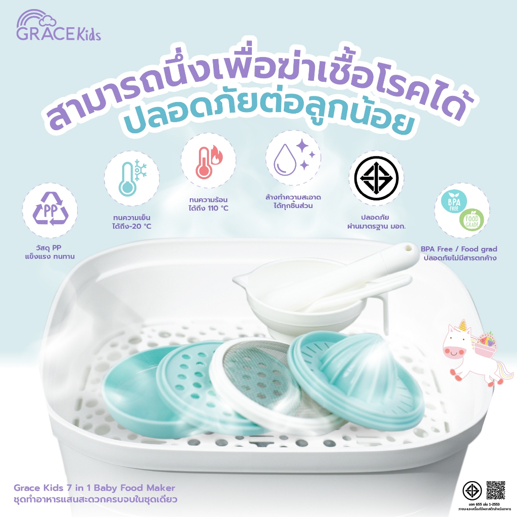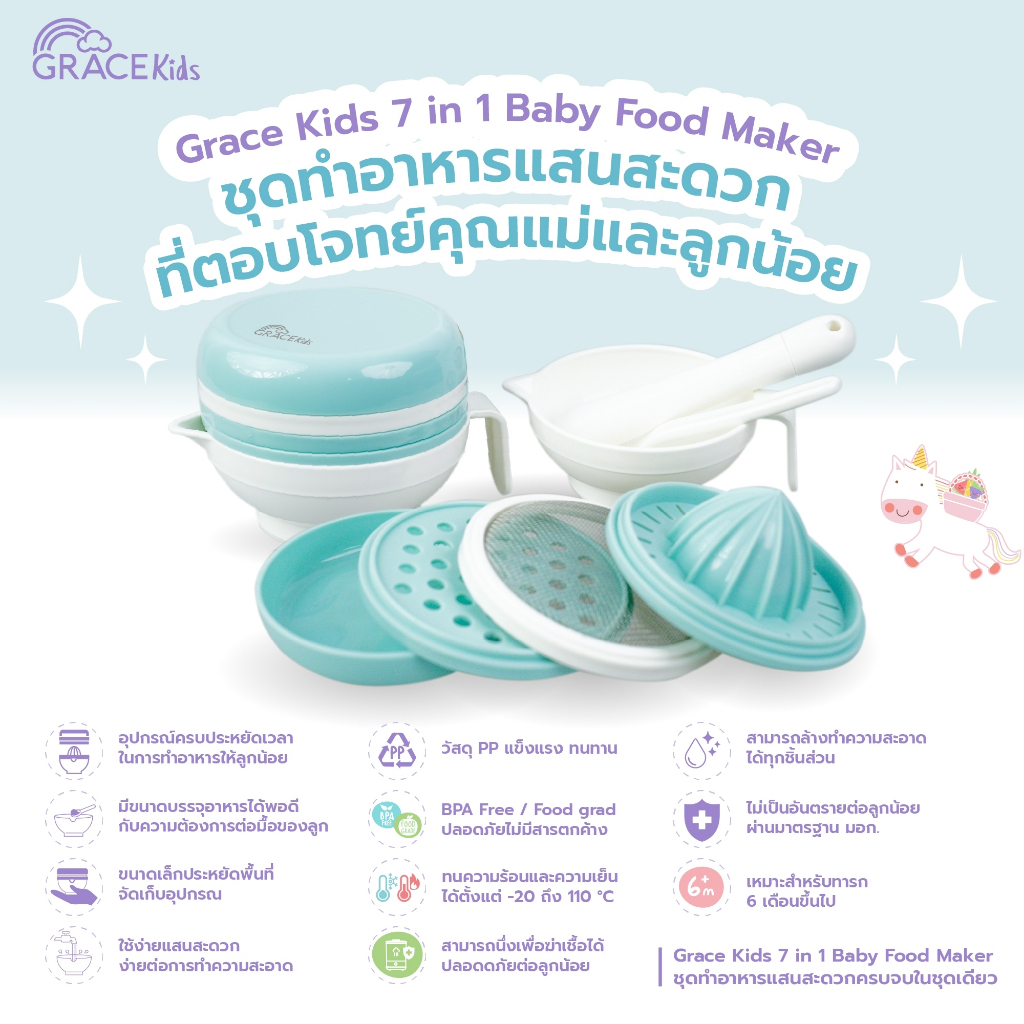 Grace kids ชุดทำอาหารลูก (ทำอาหารได้ 6 แบบ) การตวง กรอง คั้น ขูด ตำ และบด อุปกรณ์ทำอาหารลูก