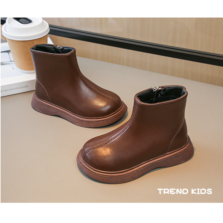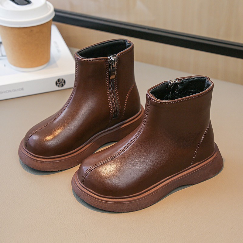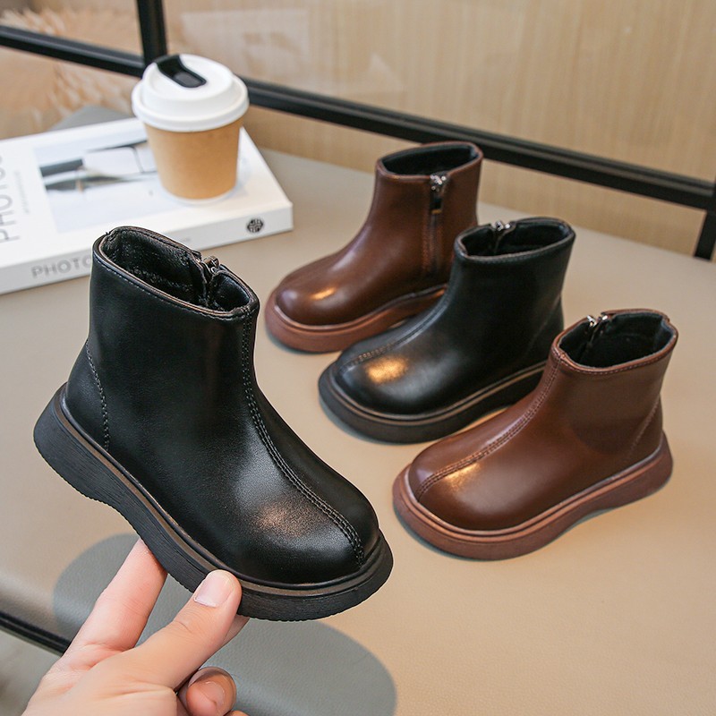 เด็กแฟชั่นรองเท้าที่เรียบง่ายสาวข้อเท้าบูตสีดําเด็กรองเท้าหนังสั้นซิปด้านข้างหนาด้านล่างฤดูใบไม้ร่วงฤดูหนาว2024ใหม่
