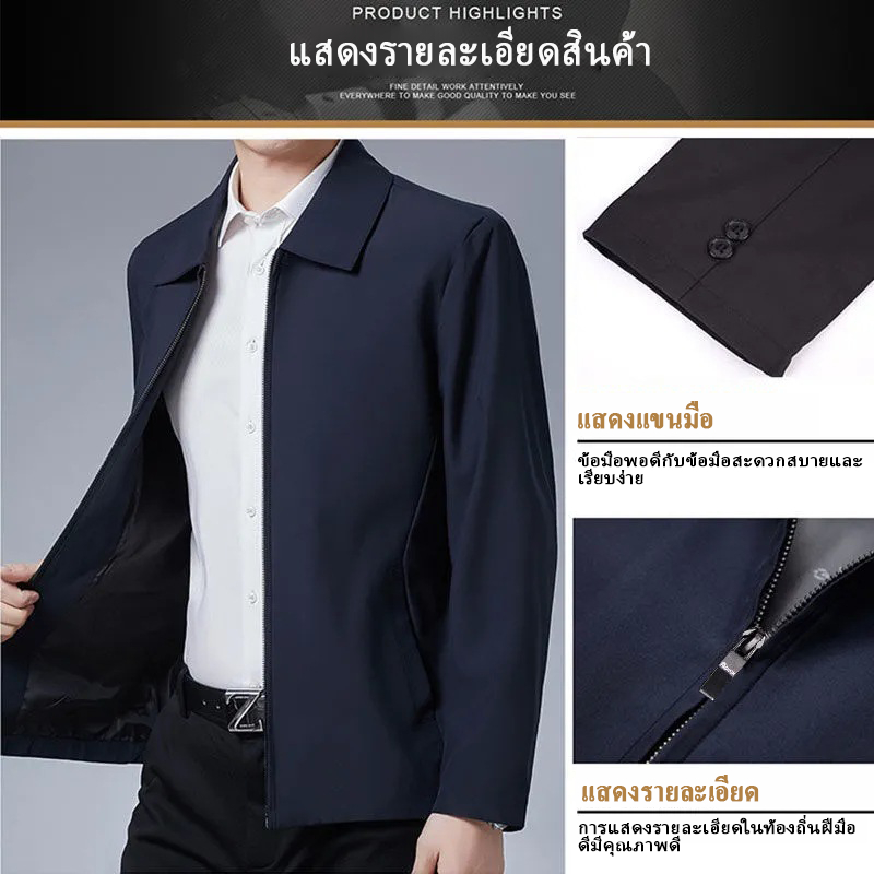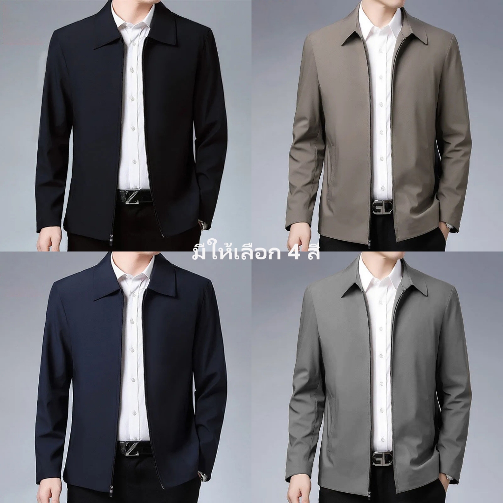 เสื้อแจ็คเก็ตลำลองทำงานฤดูใบไม้ผลิและฤดูใบไม้ร่วงของผู้ชาย เสื้อแจ็คเก็ตซิปผู้ชายแบบปกบาง M-3XL