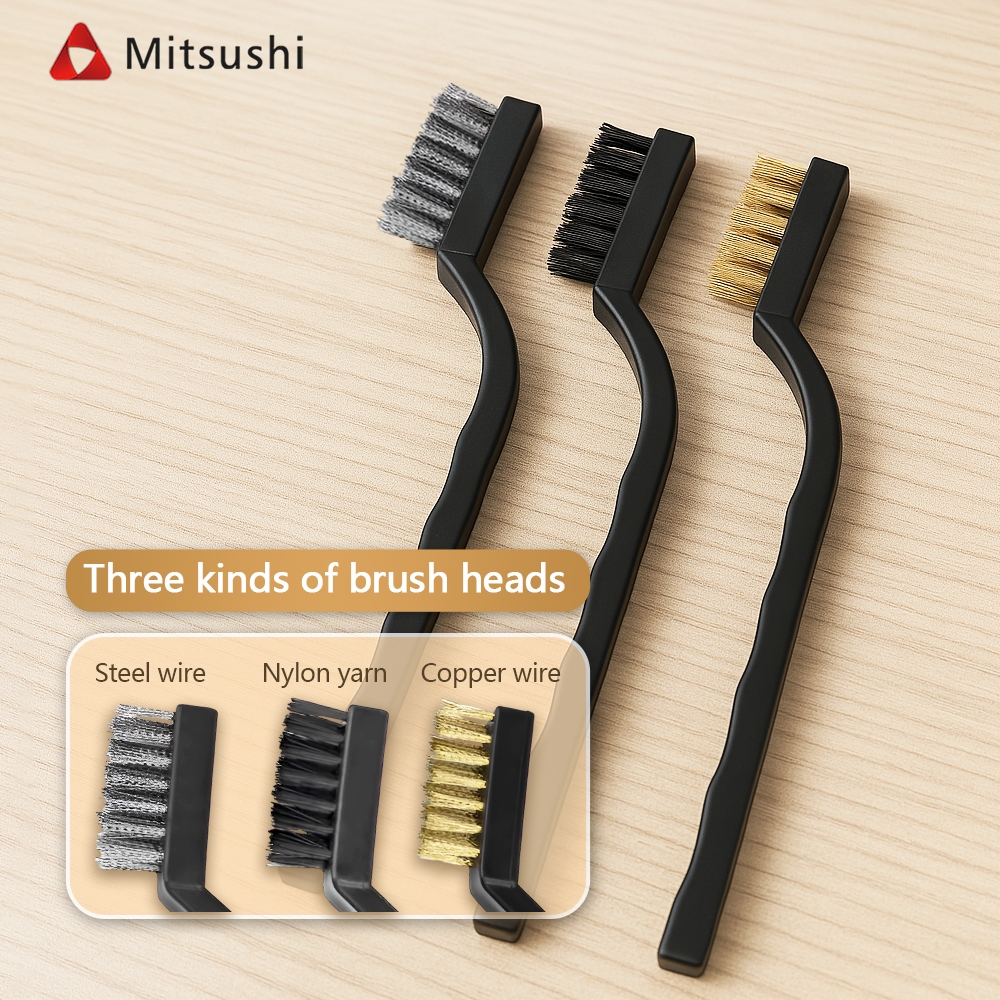 Mitsushi เซ็ทแปรงขัด 3pcs 7นิ้ว (แปรงไนลอน+แปรงทองเหลือง+แปรงสแตนเลส) แปรงขัดสนิม แปรงDIY แปรงลวดเหล็ก แปรงลวด
