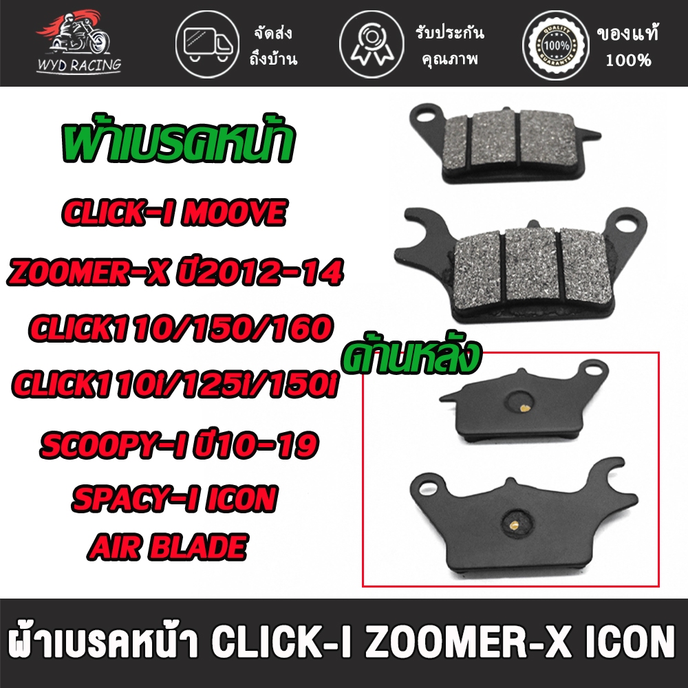 ชุดผ้าเบรค click110i/125i/150i ปี12-20,click-i,scoopy-i ปี10-19,lead125,spacy-i,icon,zoomer-x ดิสเบรคหน้า+ดรัมเบรคหลัง
