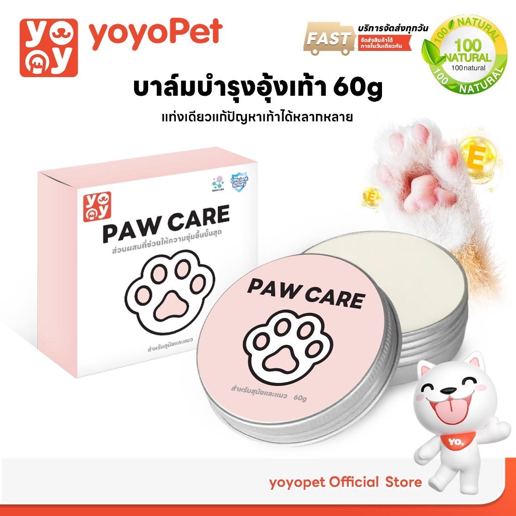 yoyopet : Paw Care 60g บาล์มบำรุงอุ้งเท้า จมูก ลดการเเห้งกร้าน สำหรับสุนัขและแมว ครีมทาเท้า แมว หมา