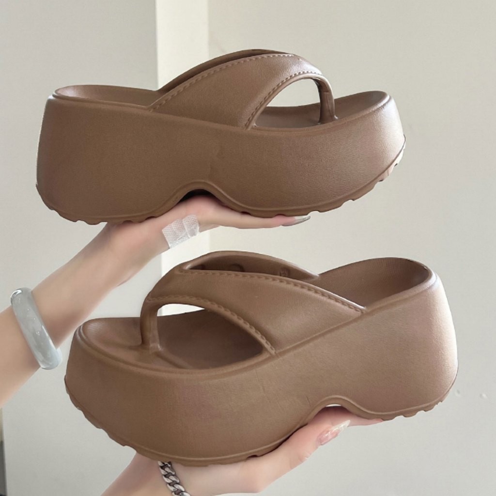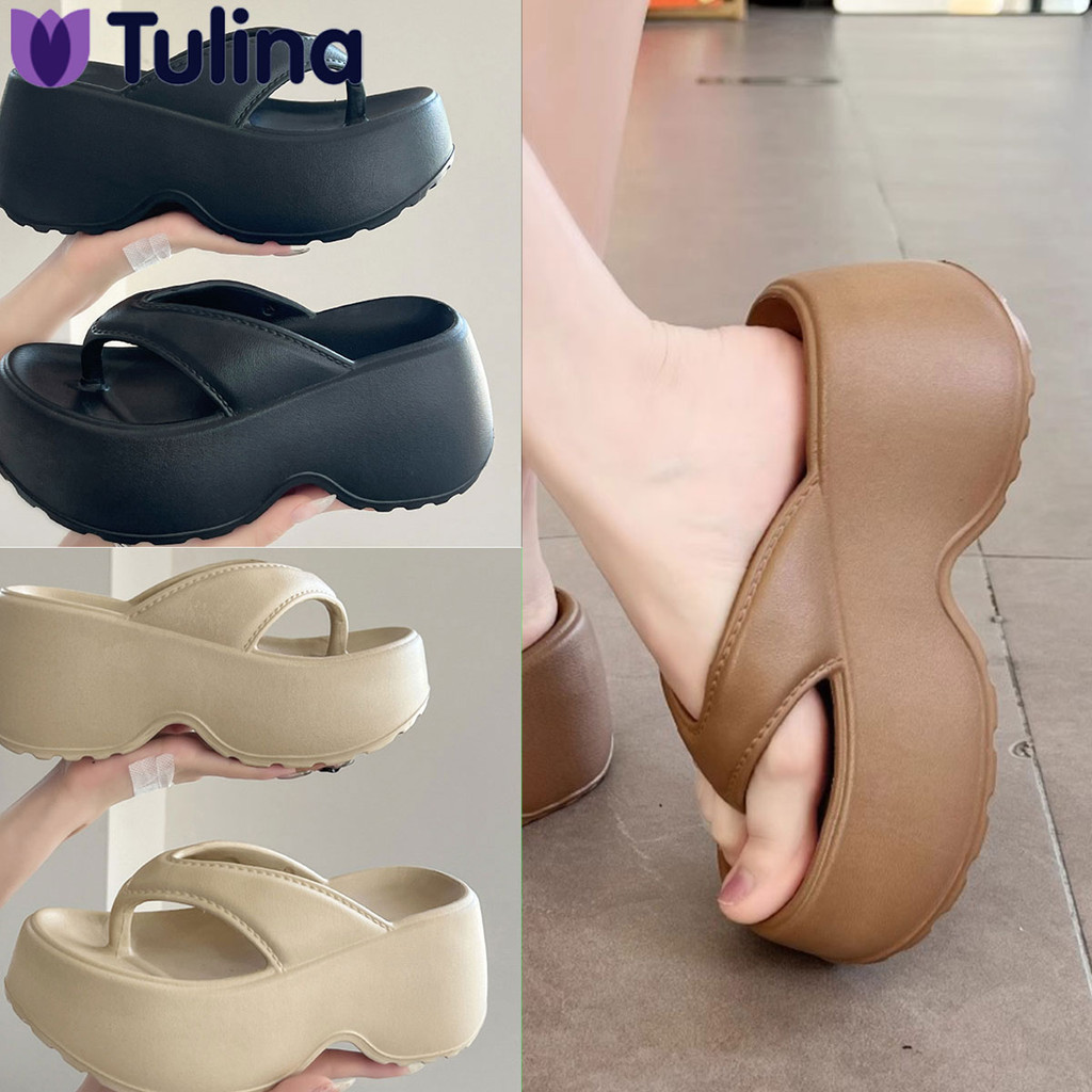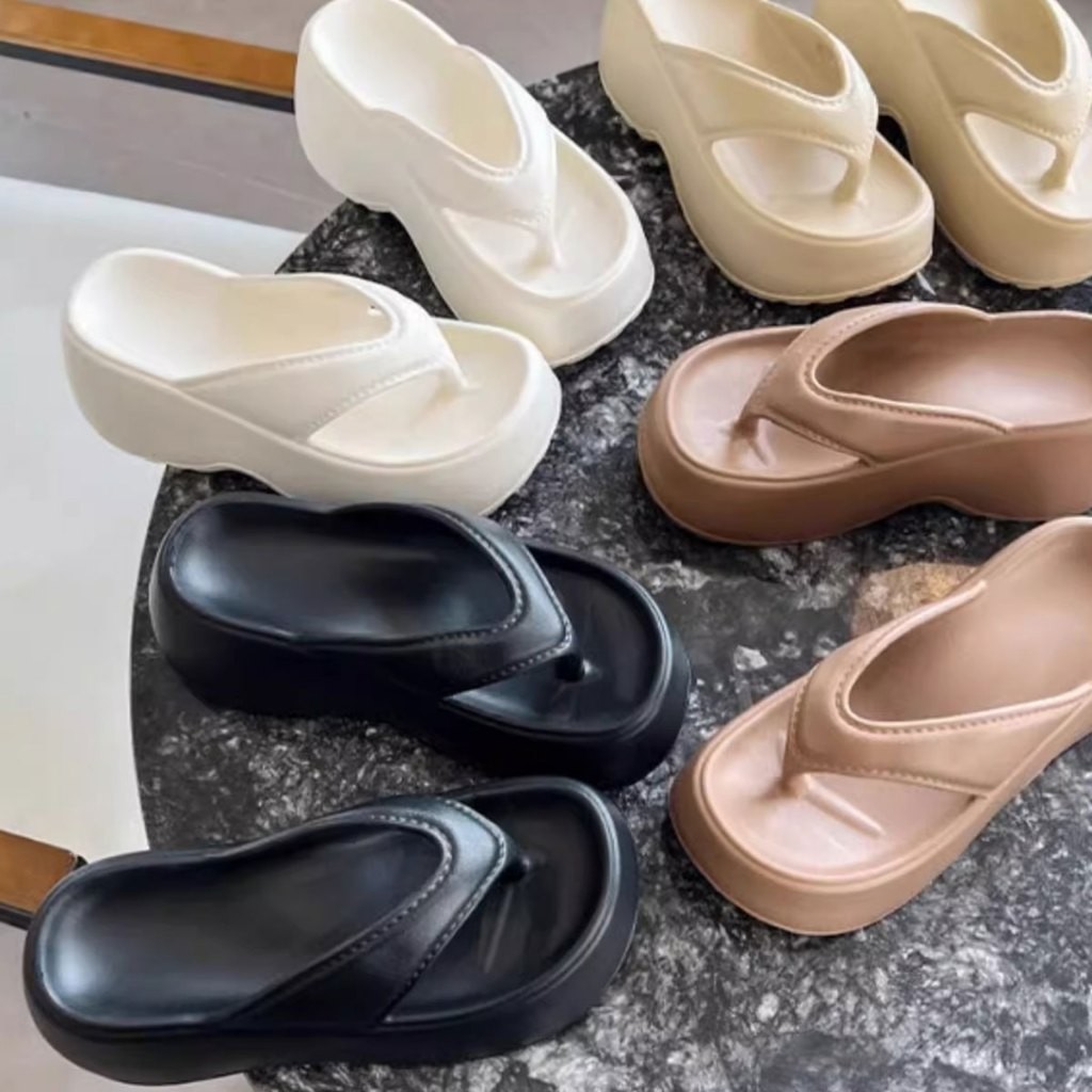 รองเท้าแตะเพิ่มความสูงสีดำ สไตล์คีบ เหมาะสำหรับหน้าร้อน