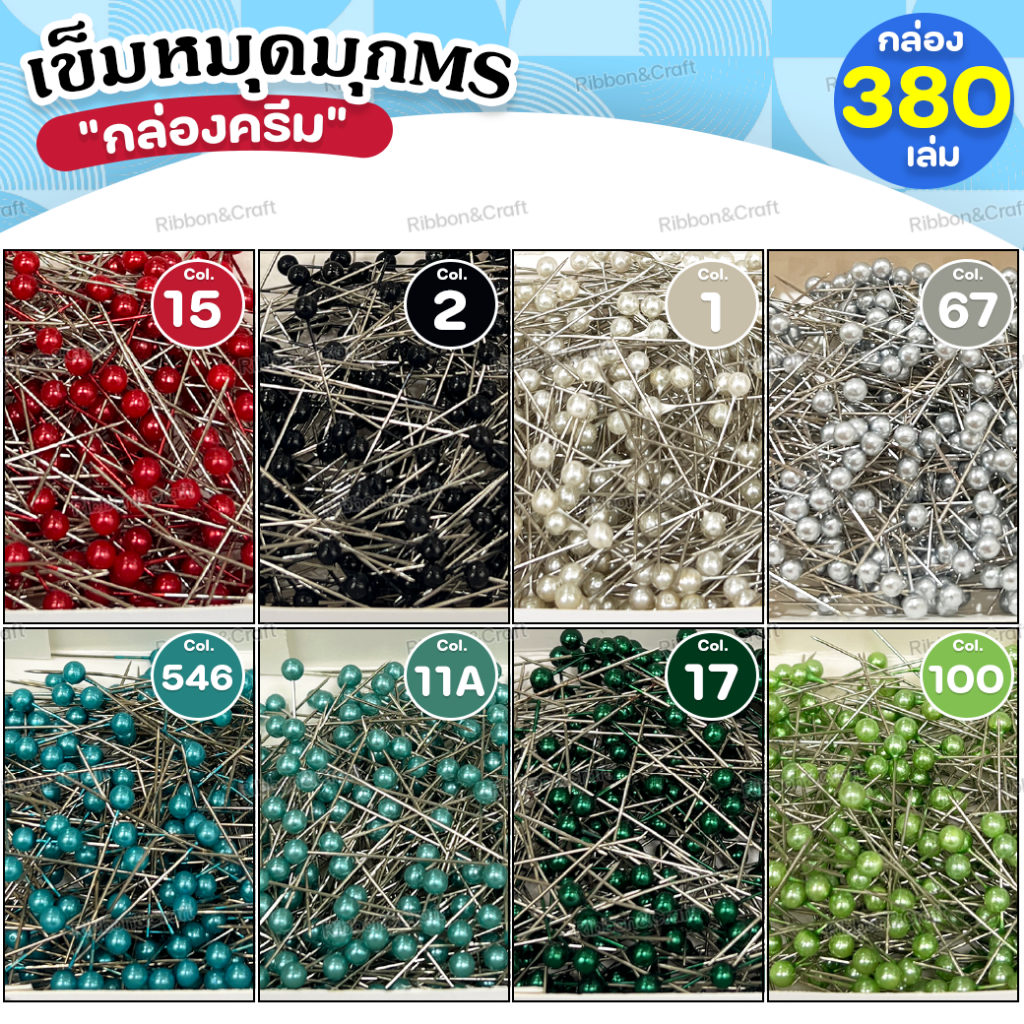A090020 เข็มหมุดมุกMS "กล่องครีม" (กล่อง380ชิ้น/สี) ✅พร้อมส่ง