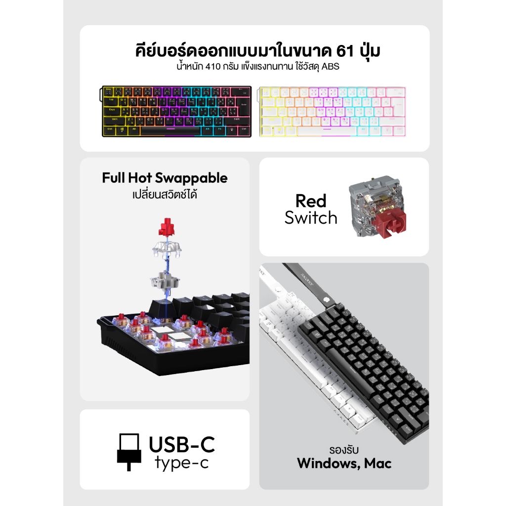 คีย์บอร์ดเกมมิ่ง Ajazz NK61 Wired RGB 61 Key Red Switch Gaming Keyboard รับประกัน 1 ปี