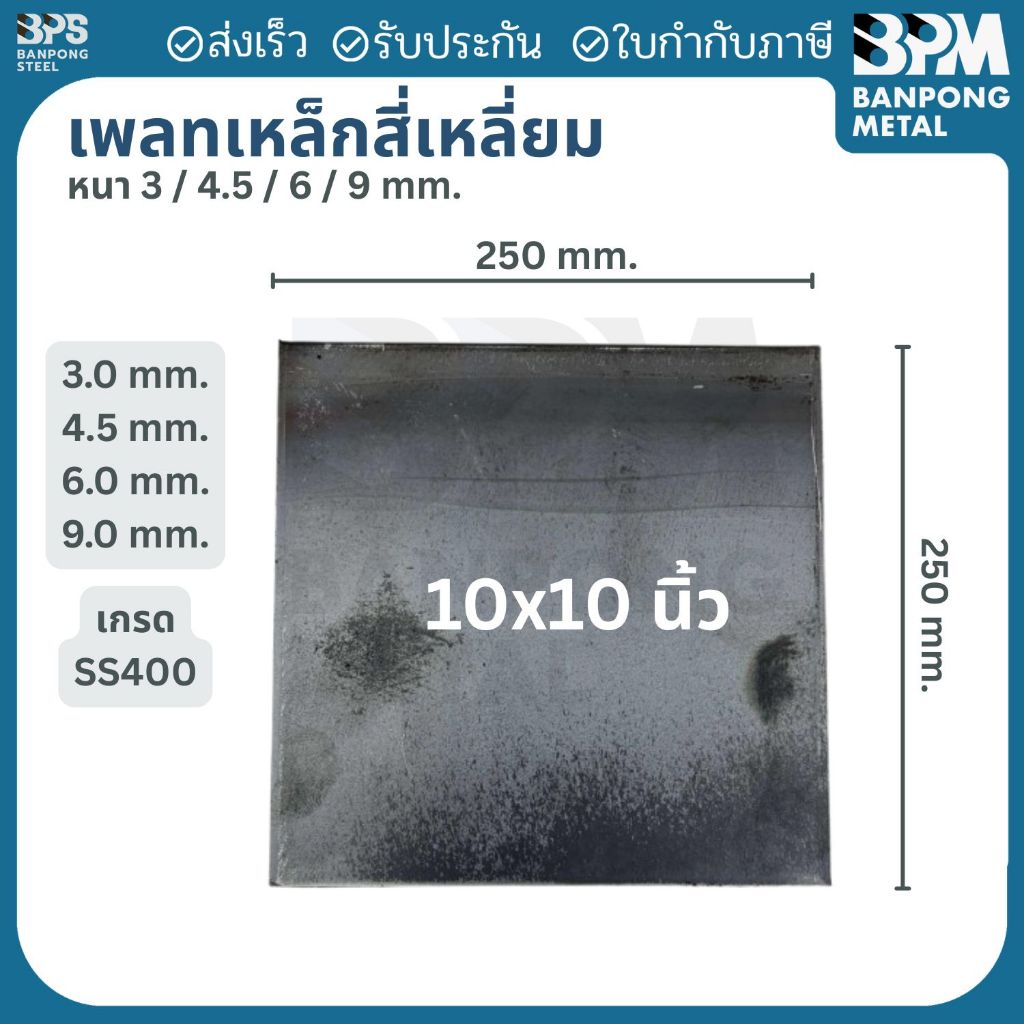 เพลท เพลต เหล็ก สี่เหลี่ยม (SS400) ขนาด 200x200 mm.,250x250 mm., หนา 3mm.,4.5 mm.,6mm.,9mm.