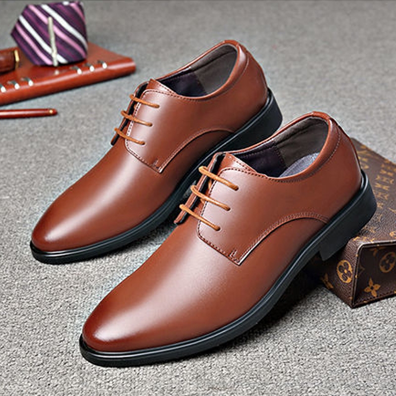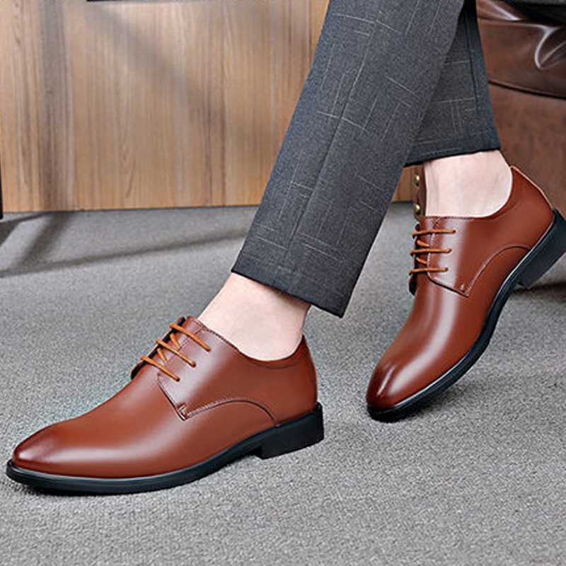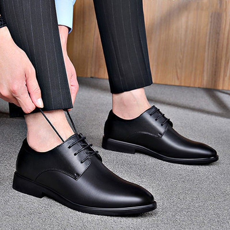 รองเท้าหนังชาย รองเท้าทำงานอย่างเป็นทางการ สไตล์ลำลองธุรกิจ เชือกผูก สีดำ สีน้ำตาล หลา 39-44