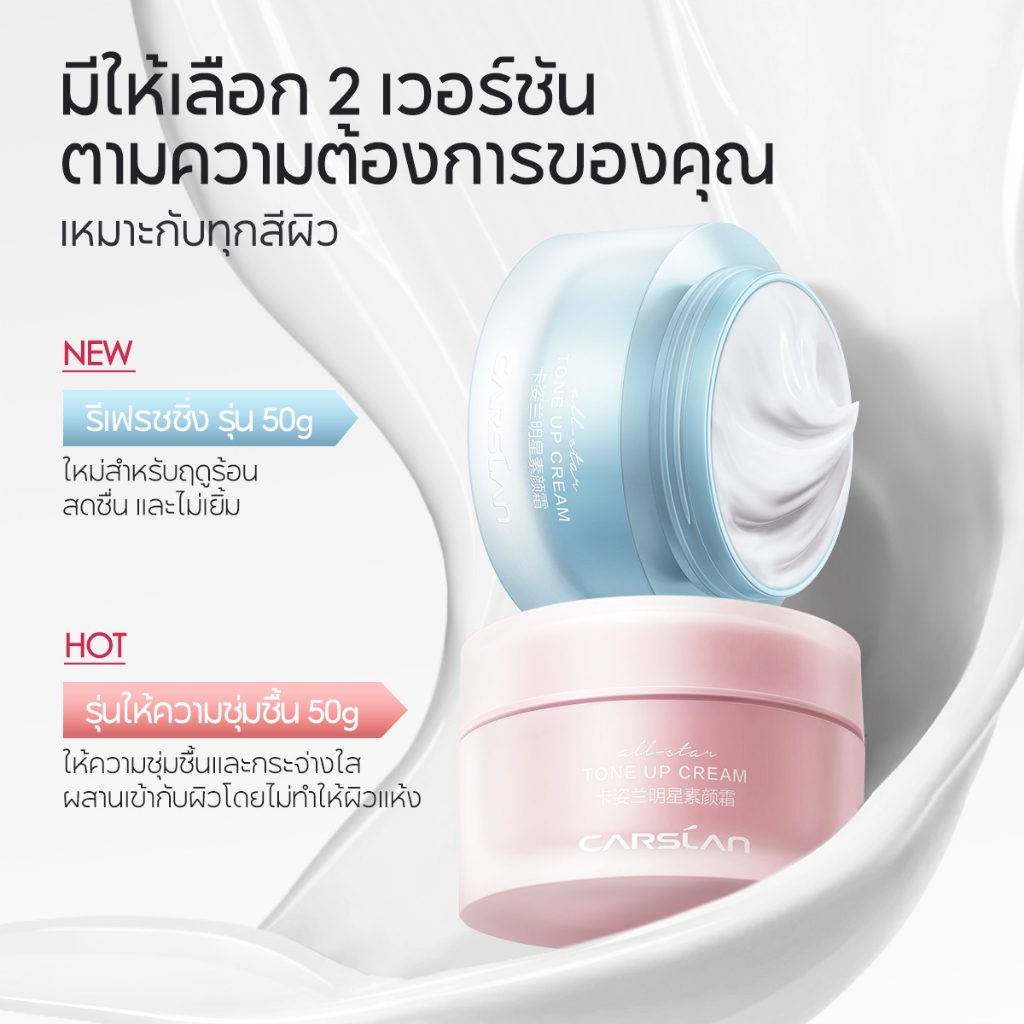 CARSLAN ครีมหน้าใส เนื้อบางเบา 50g ครีมบำรุงผิวชุ่มชื้น กระจ่างใส ใช้เป็นโทนอัพครีม ล้างออกได้ด้วยโฟมล้างหน้า