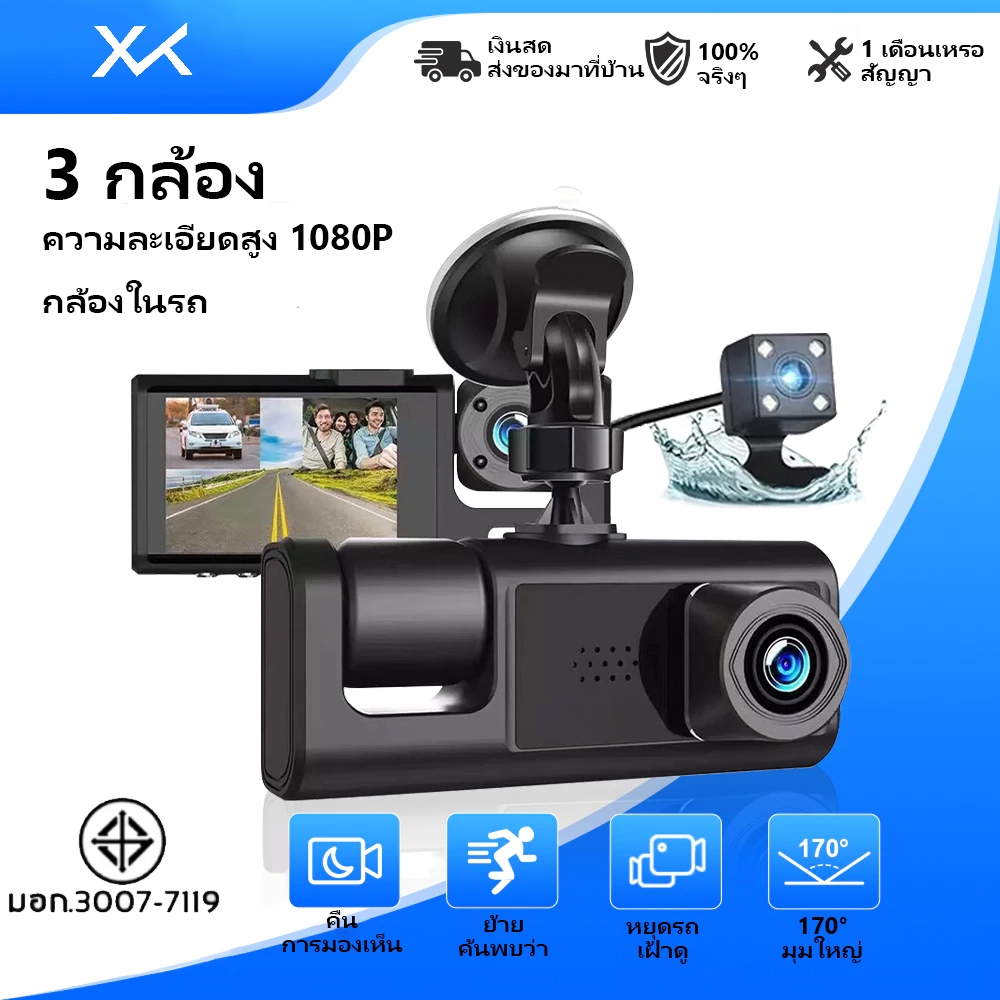 กล้องบันทึกวิดีโอ 1080P WIFI Car Camera Dash Cam HD Night Vision DVR กล้องติดรถยนต์ 3 กล้อง กล้องติดรถยน