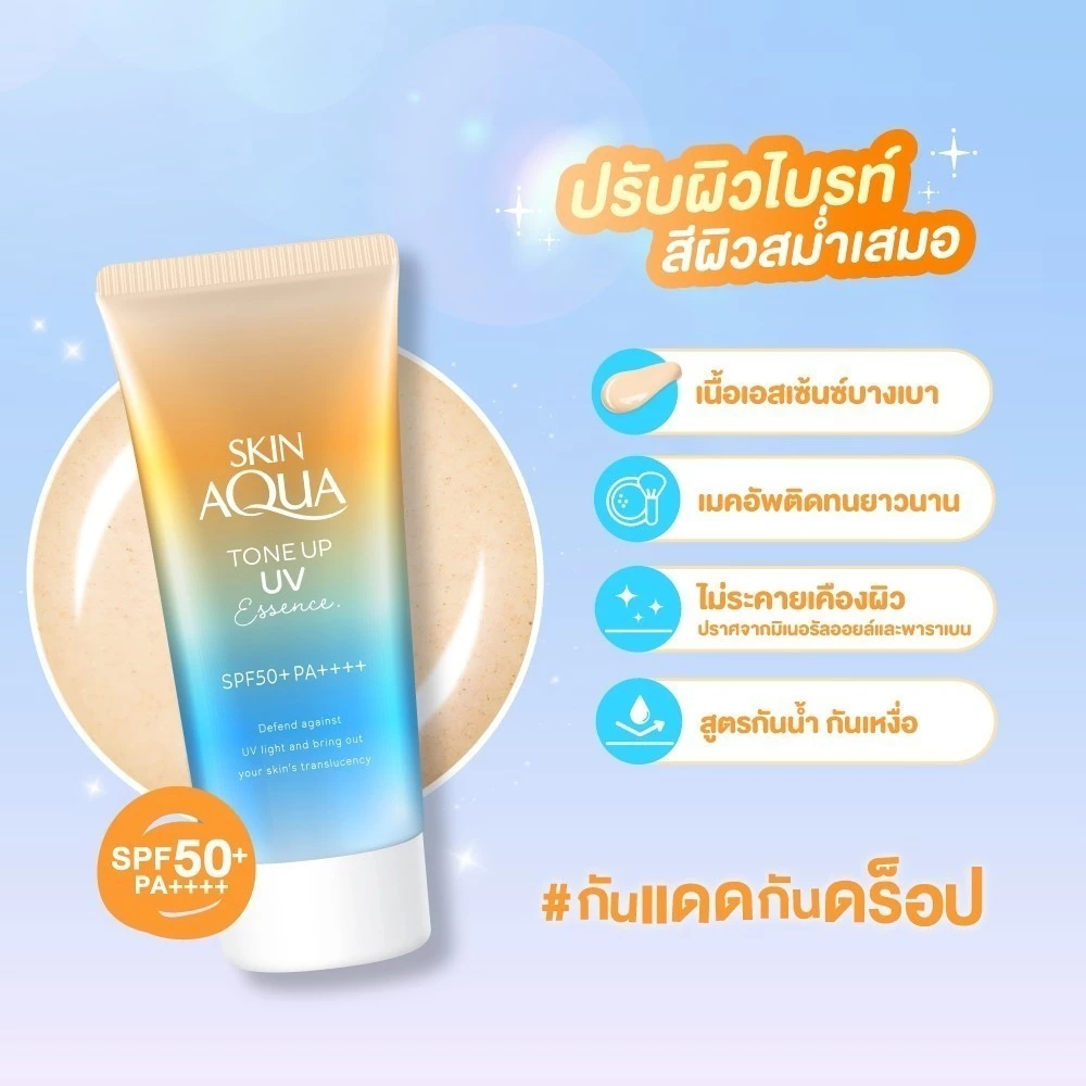 [1 แถม 1] Sunplay ซันเพลย์ สกิน อะควา โทน อัพ ยูวี เอสเซ้นซ์ เอสพีเอฟ กันน้ำ กันแดด SPF50+ PA++++ 80 กรัม