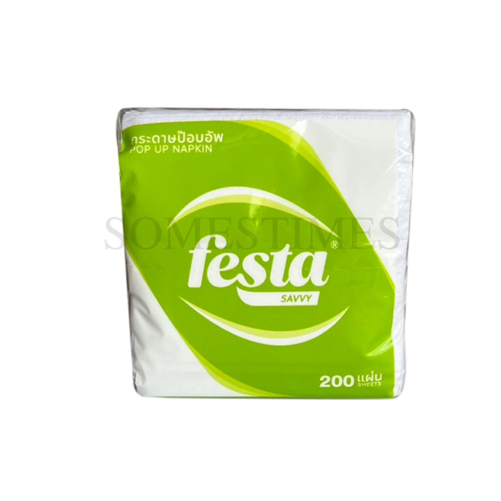 Festa กระดาษเช็ดปากป๊อปอัพ หนา 1 ชั้น บรรจุ 200 แผ่น หน้า 10 ซม. จำนวน 60 ห่อ, 1 ลัง