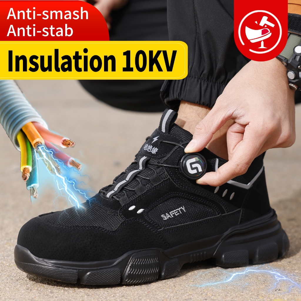 Guyisa รองเท้าเซฟตี้ รองเท้าช่างไฟฟ้า หัวเหล็กพลาสติก ทนต่อการสึกหรอ F155BKV 37-46