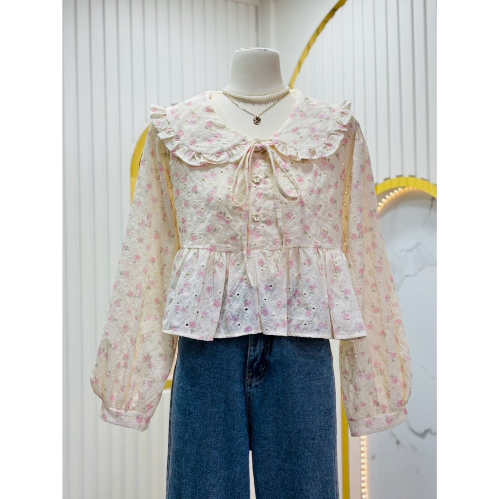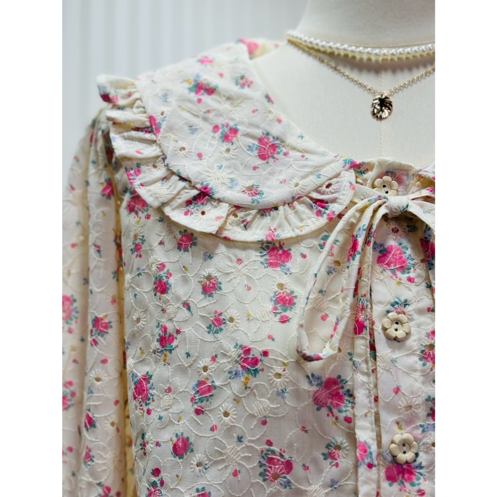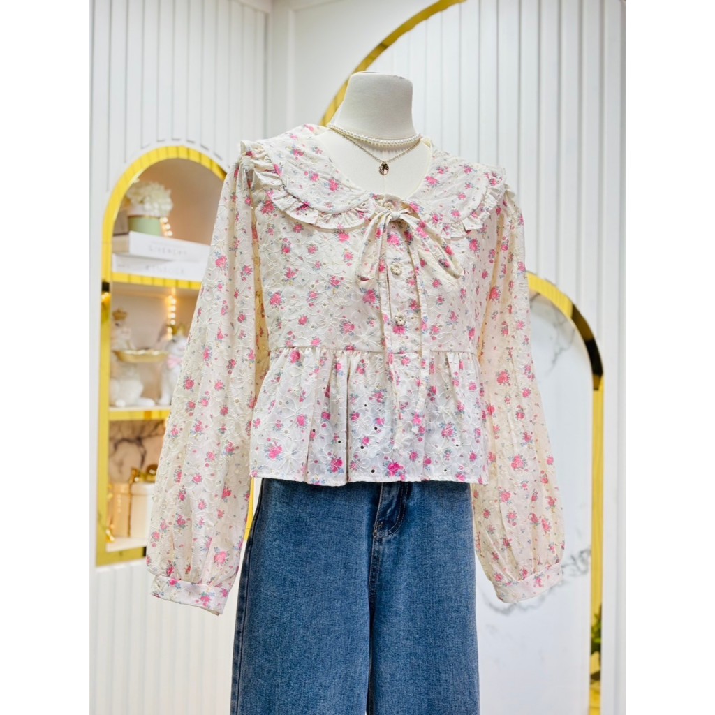 ป้าย HEAHA เสื้อผ้าคอตตอนปักฉลุลายทั้งตัวแต่งโบว์ผูกด้านหน้า อก 40 นิ้ว ยาว 19 นิ้ว