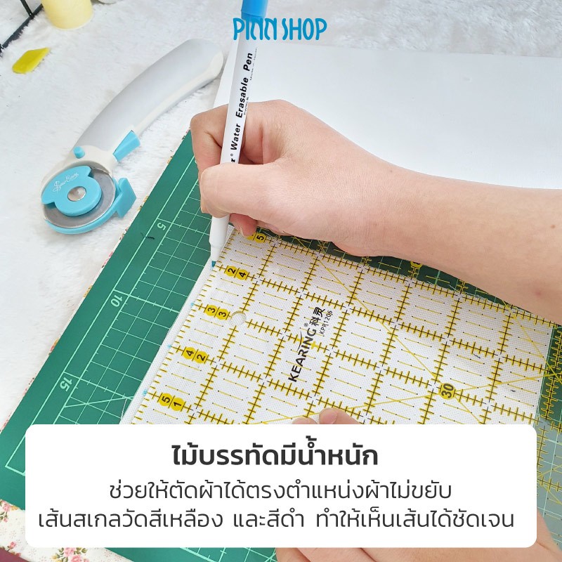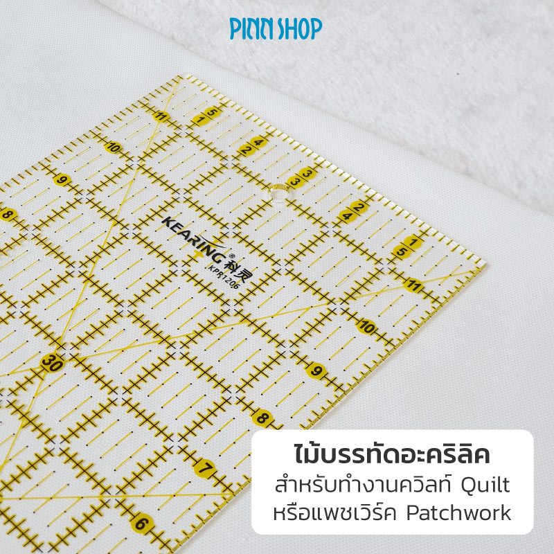 ไม้บรรทัดสำหรับตัดผ้า ไม้บรรทัดทรงสี่เหลี่ยม เหมาะสำหรับการตัดผ้าชิ้น ผ้าแถบ หรือ ชิ้นผ้าเป็นรูปสี่เหลี่ยม เช่น บล็อกผ้า
