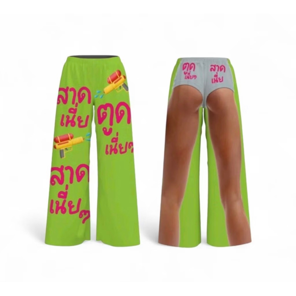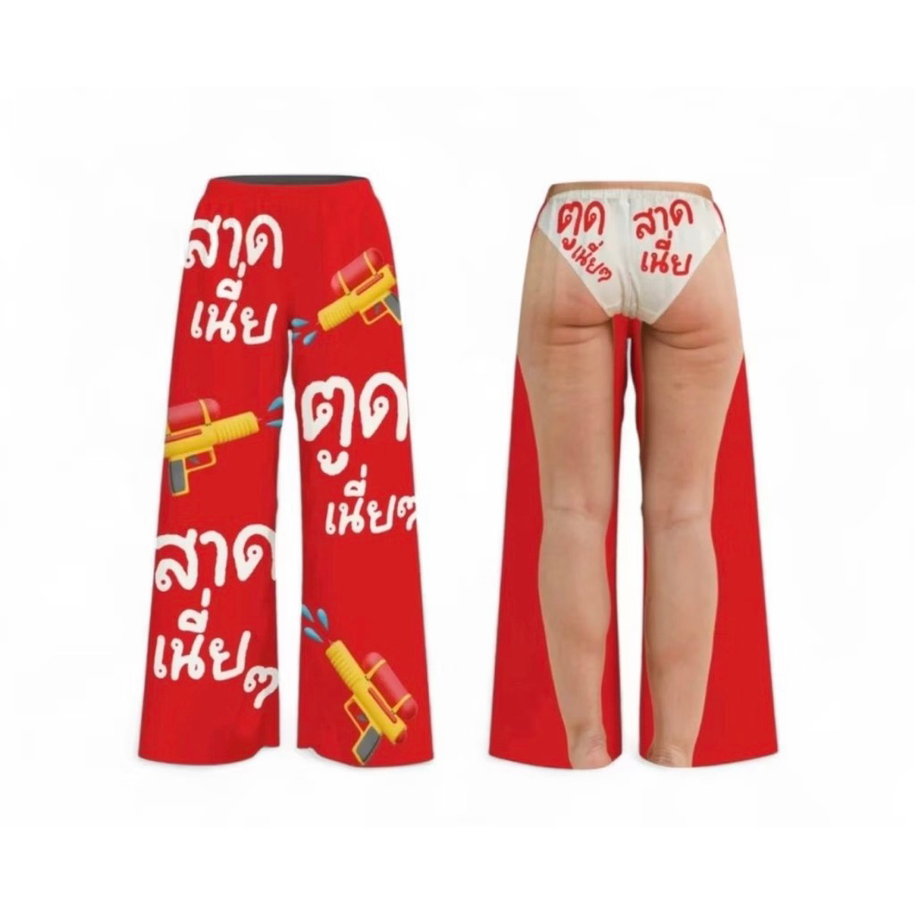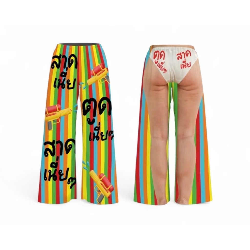 กางเกงขายาวไหมอิตาลี พิมพ์ลายสีสวยสดจ