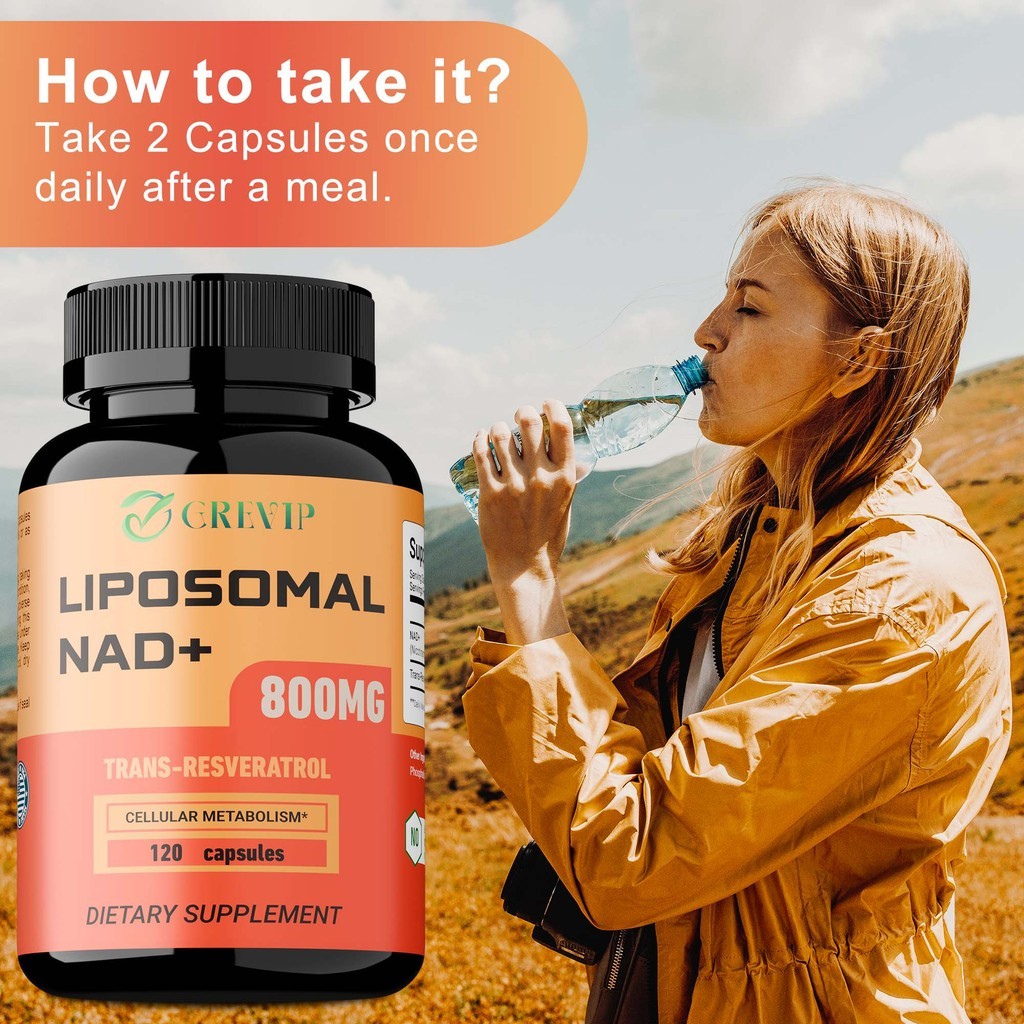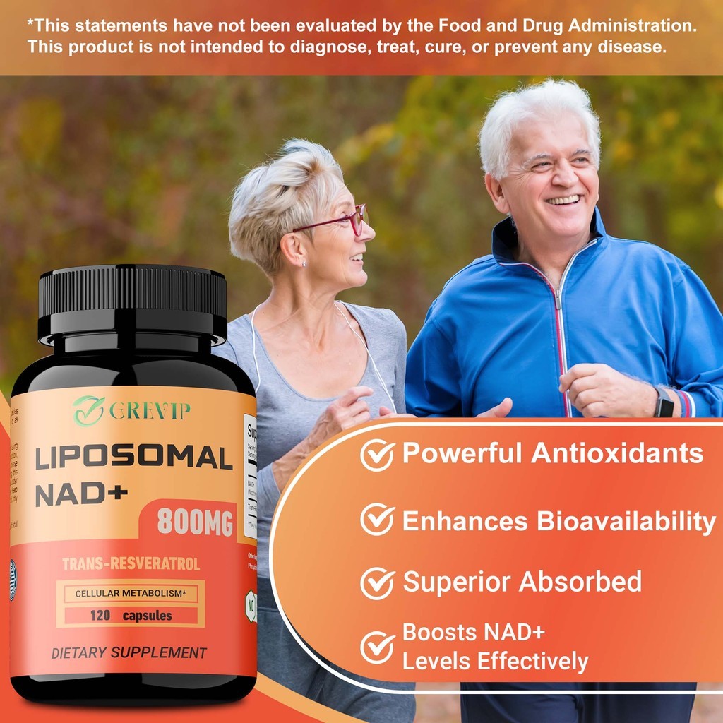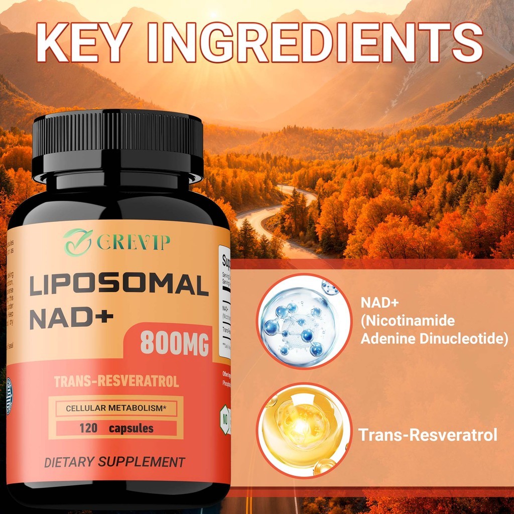 Grip Premium Liposomal NAD+ พร้อม Trans-Resveratrol, Cellular Energy & Metabolsm Support, อาหารเสริมต่อต้านวัย, สูตรยืนยาว, การระบายอากาศอันปรับปรุง