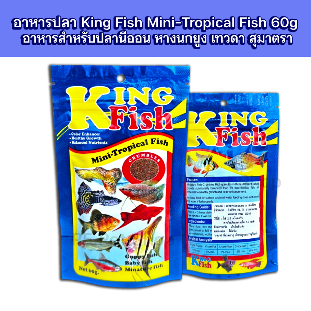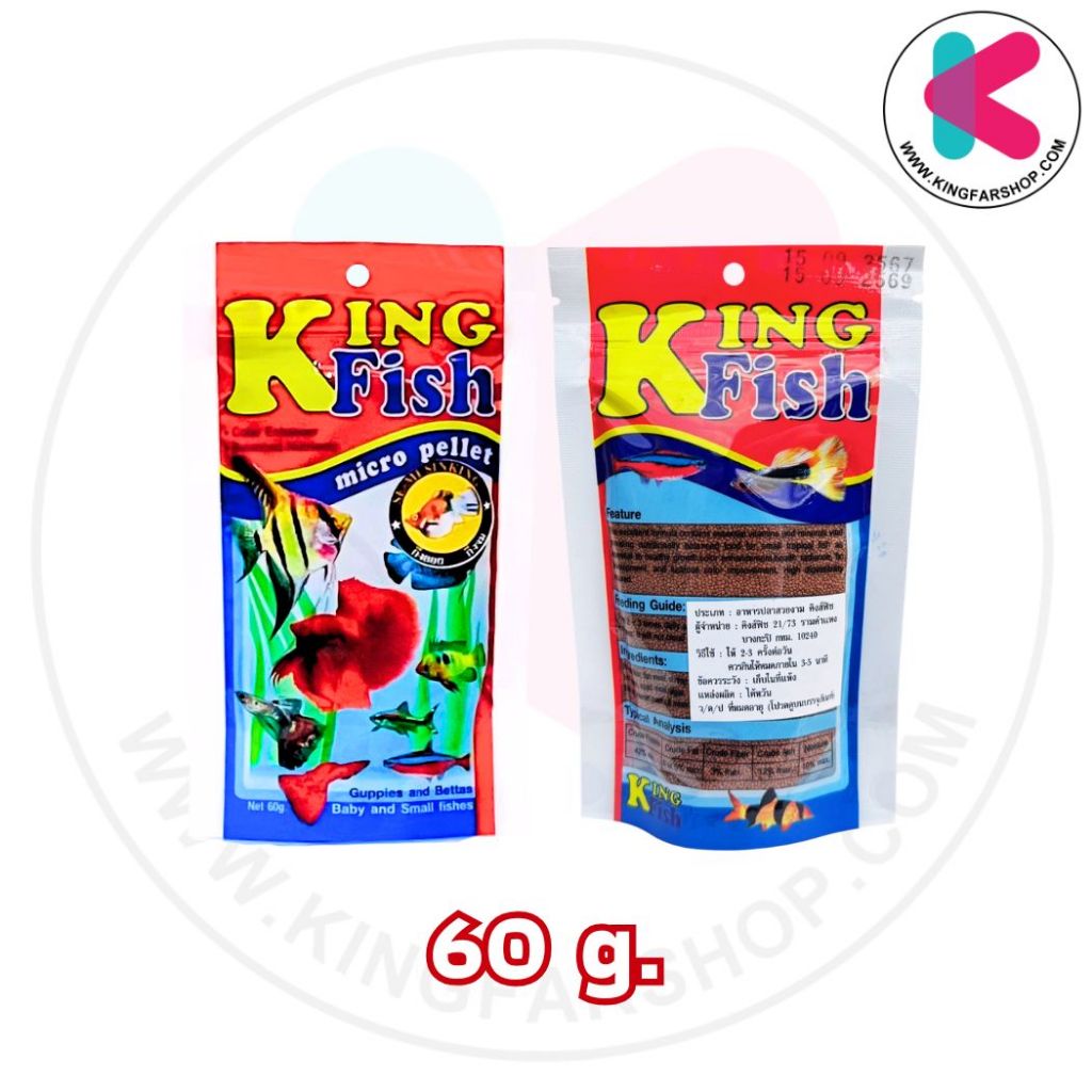 อาหารปลา Kingfish สำหรับปลากัดและปลาพันธุ์เล็กทุกชนิด อาหารปลาคิงฟิช ขนาด60g **ส่งด่วนได้ภายใน1วัน**