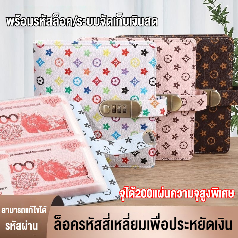 ซองเงินท้าทาย 200 ซอง ล็อครหัสผ่าน สมุดเงิน การเงินครอบครัว ซองเงินที่นำกลับมาใช้ใหม่ได้ สมุดเก็บธนบัตร ที่หนีบเงิน สมุดเงิน