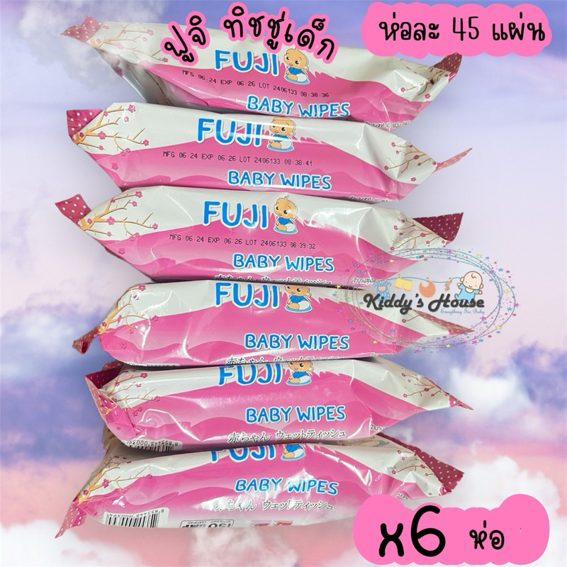 แบ่งขาย ทิชชู่เปียกฟูจิ 6 ห่อ ( 1 ห่อมี 40+5 แผ่น แบบฝาปิด ทิชชู่เปียกเด็ก fuji wipes