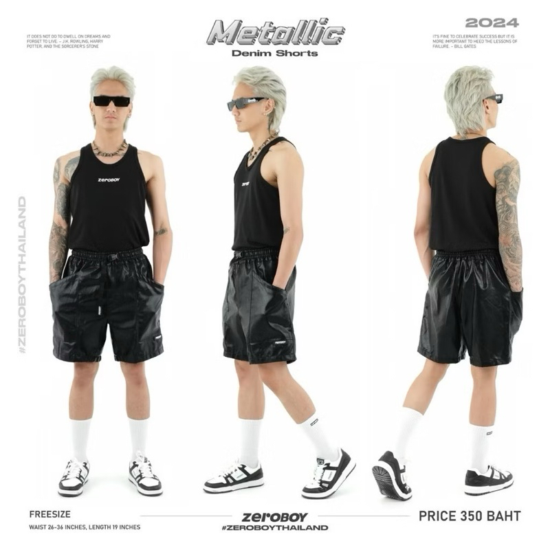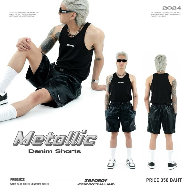 ZEROBOY : Metallic Denim Shorts " กางเกงขาสั้นสีเมทัลลิก "