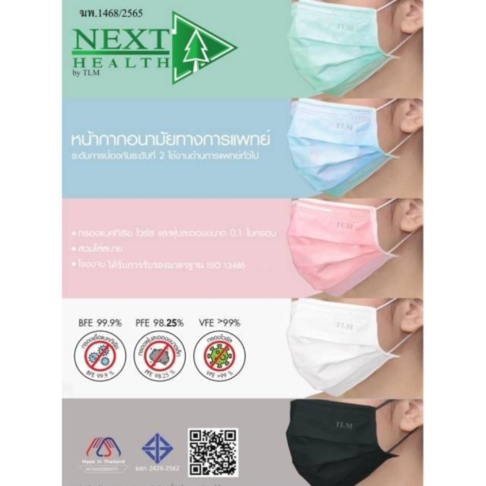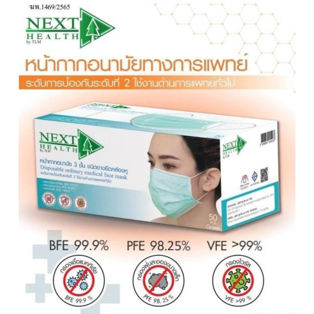 Next Health หน้ากากอนามัย Disposable Medical เกรดการแพทย์ ปิดจมูก 3 ชั้น มีทั้งหมด 5 สี [50 ชิ้น/กล่อง]