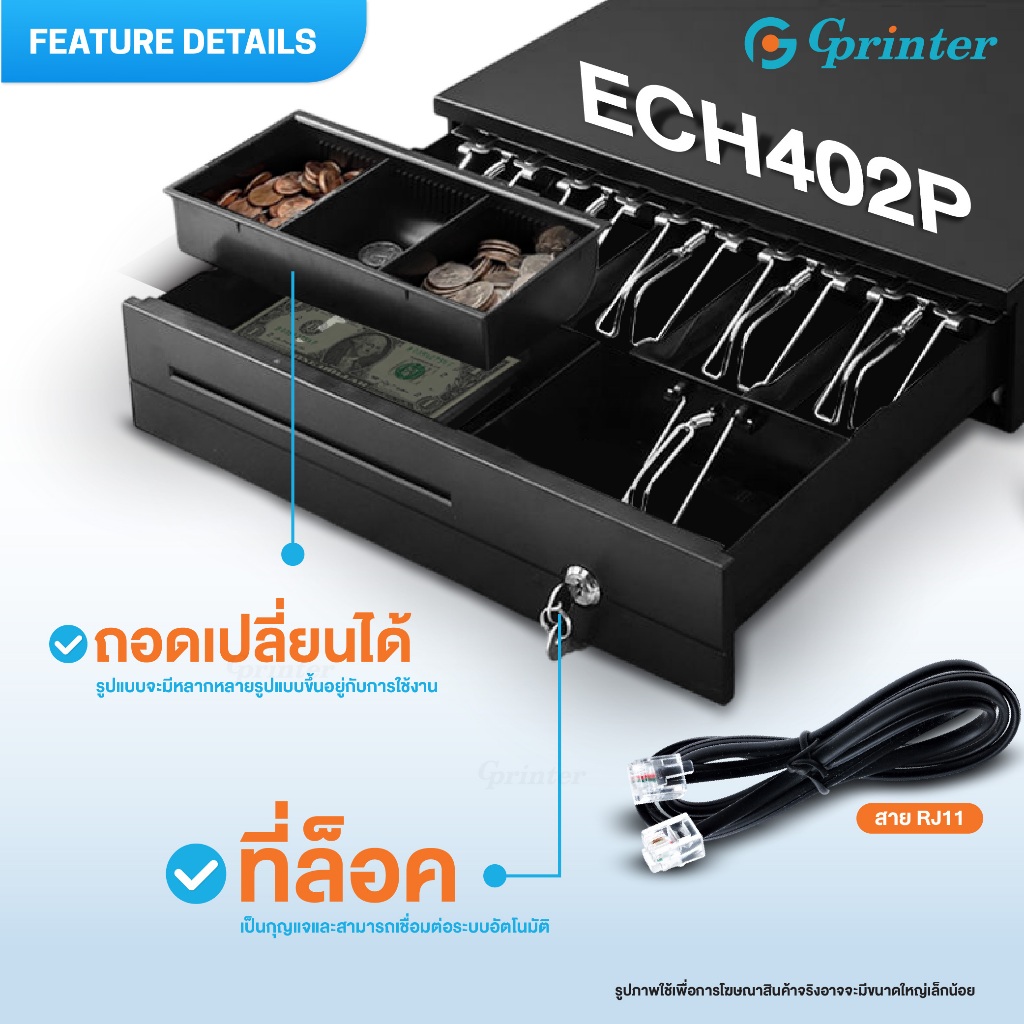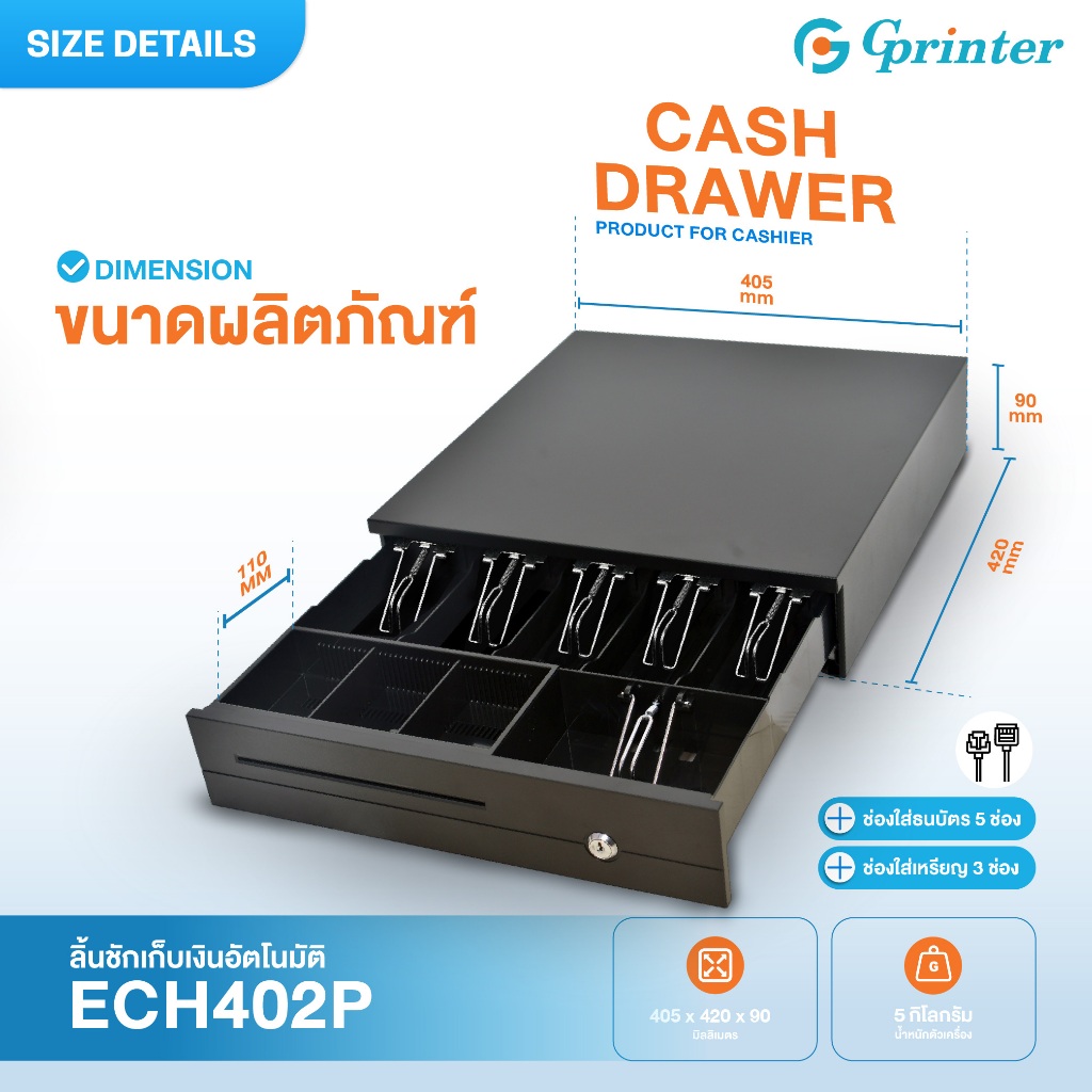 Gprinter ลิ้นชักเก็บเงิน เครื่องเก็บเงินอัตโนมัติ ลิ้นชักใส่เงิน POS Cash Draw รองรับธนบัตรไทย