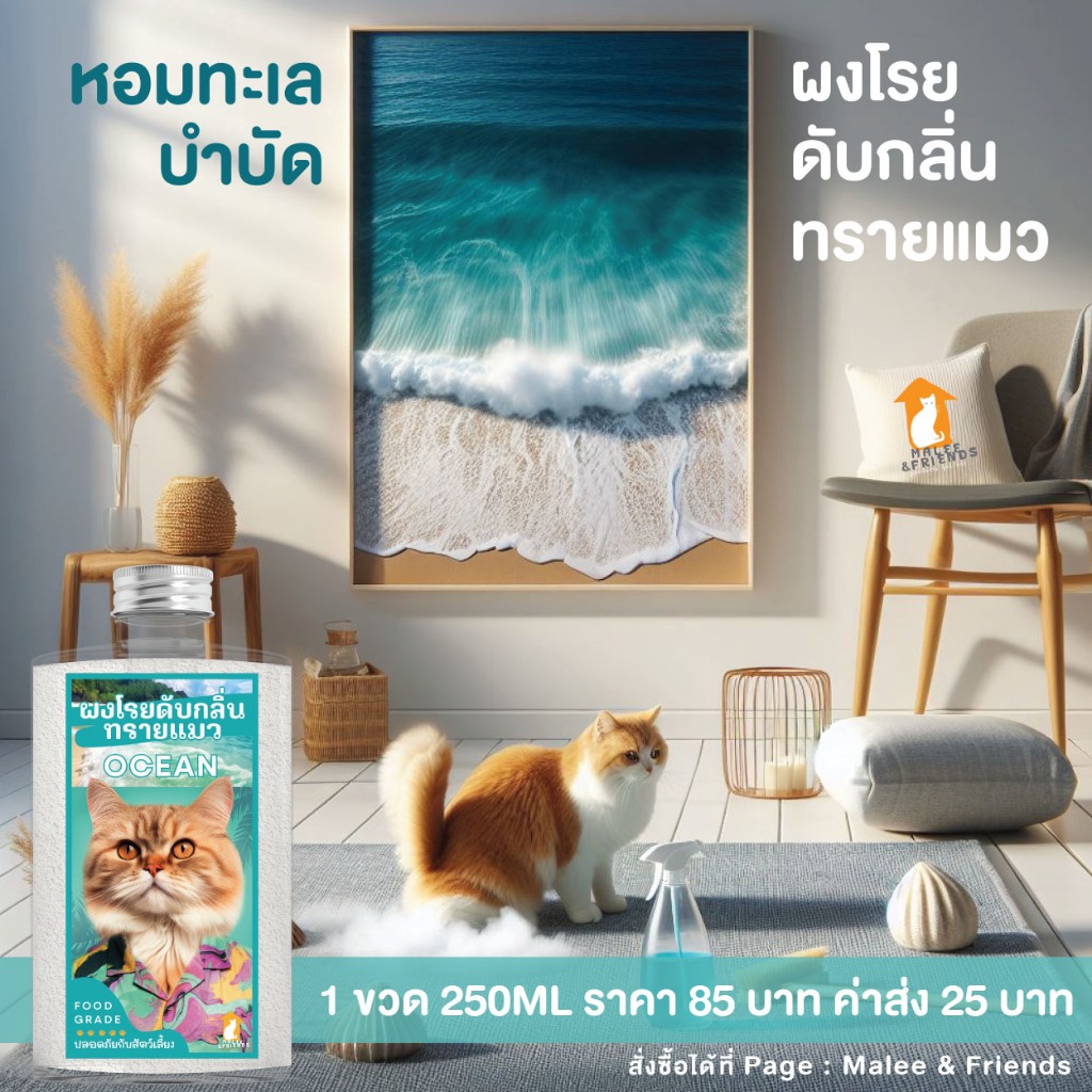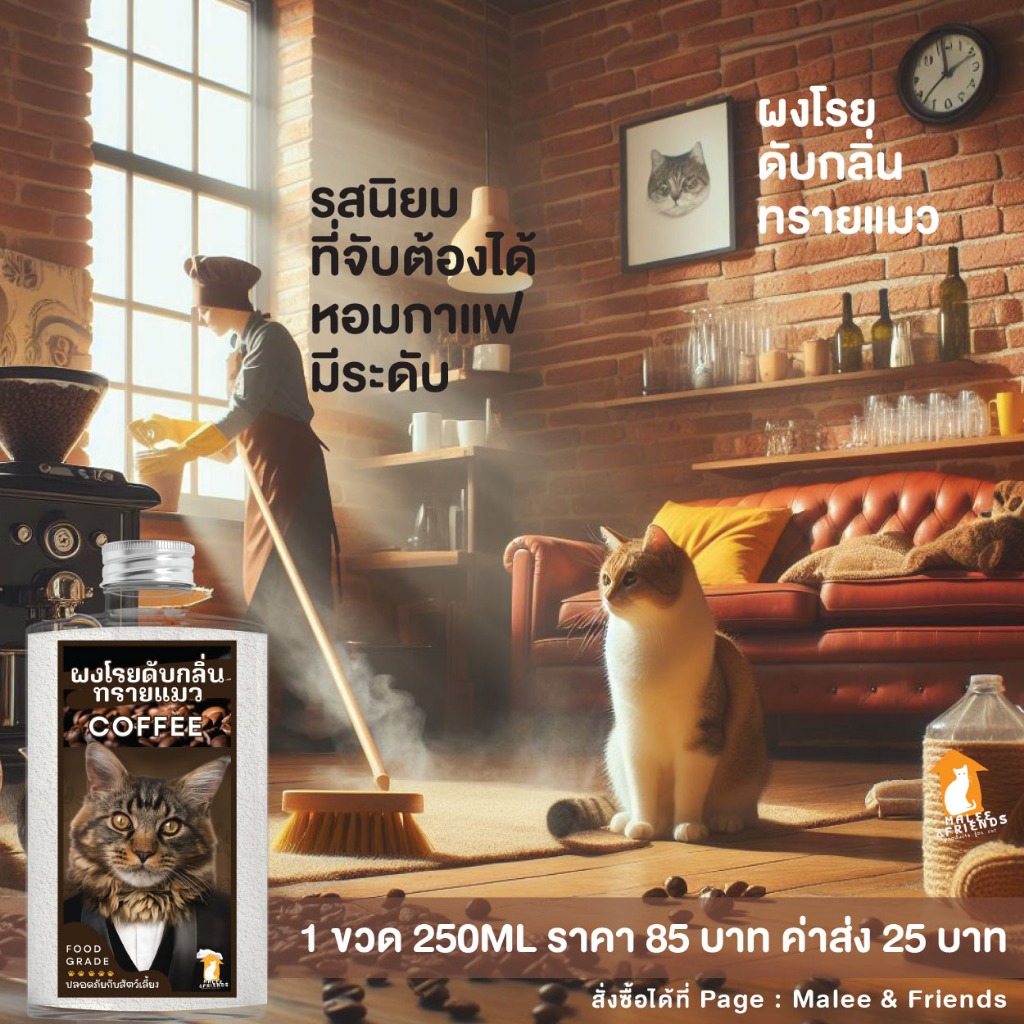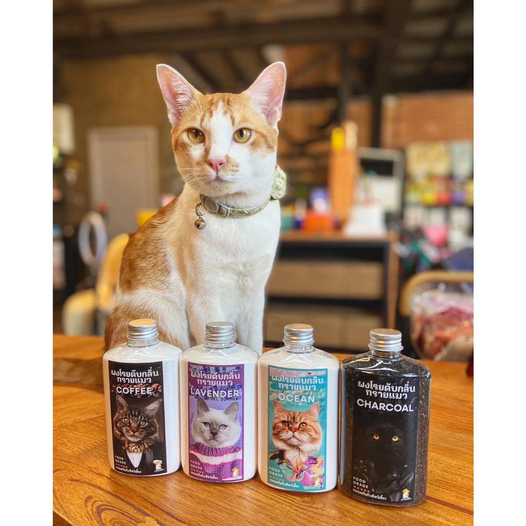 ผงโรยดับกลิ่นทรายแมว ใช้ได้กับทรายแมว ห้องน้ำแมวทุกชนิด 1 ขวด ขนาด 250 มล.