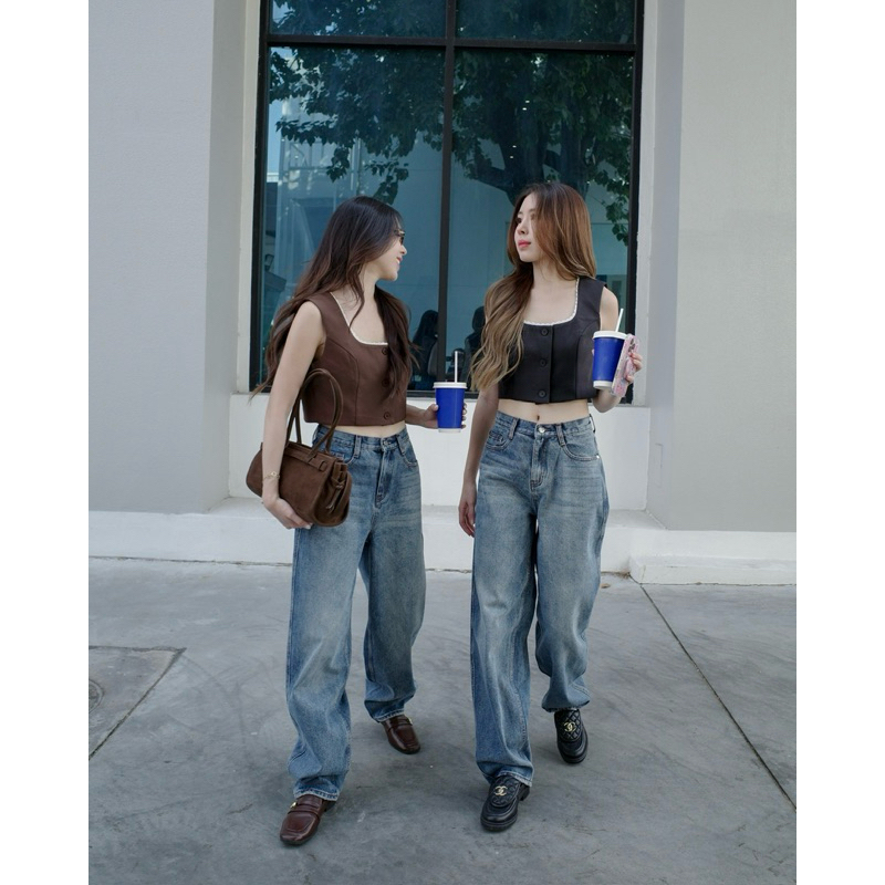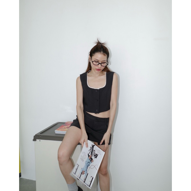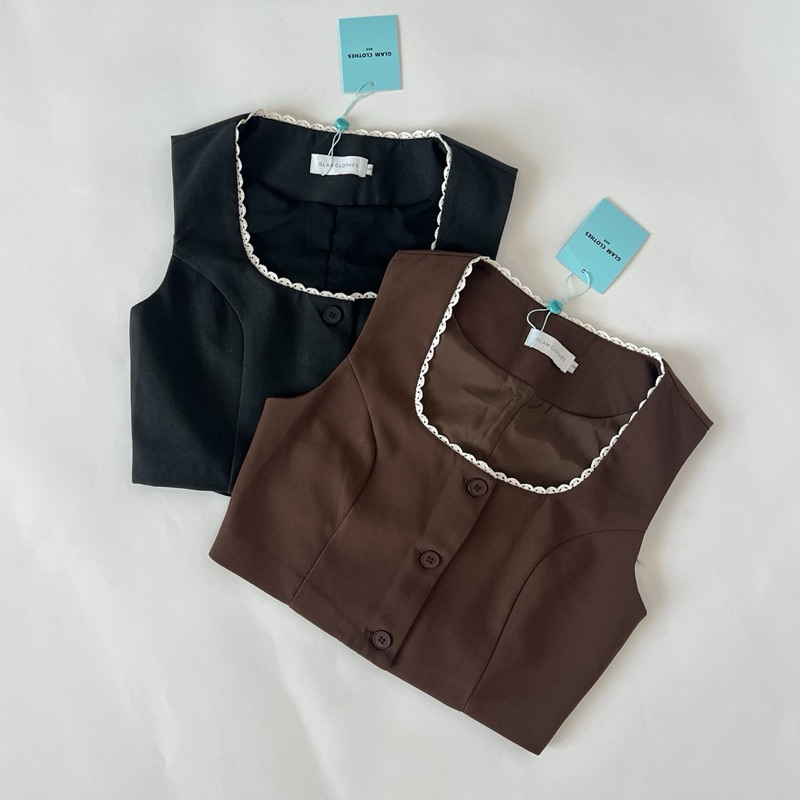 GLAMClOTHES MINI BOOM เสื้อครอปสั้นแต่งขอบเสื้อด้วยลูกไม้ ผ้าอัดกาวมีซับใน