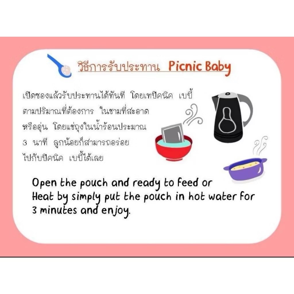 Picnic Baby อาหารสำเร็จรูปสำหรับเด็ก สามารถฉีกซองแล้วทานได้เลย อาหารบดสำหรับเด็ก ปิกนิก เบบี้
