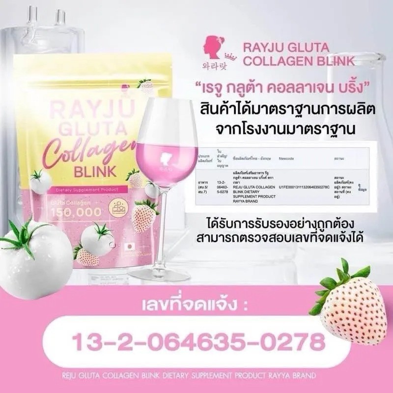 น้ำชงเรยา เรจู กลูต้า คอลลาเจน บริ้งค์ RAYJU Gluta Collagen Blink (1 ถุง มี 30 ซอง )