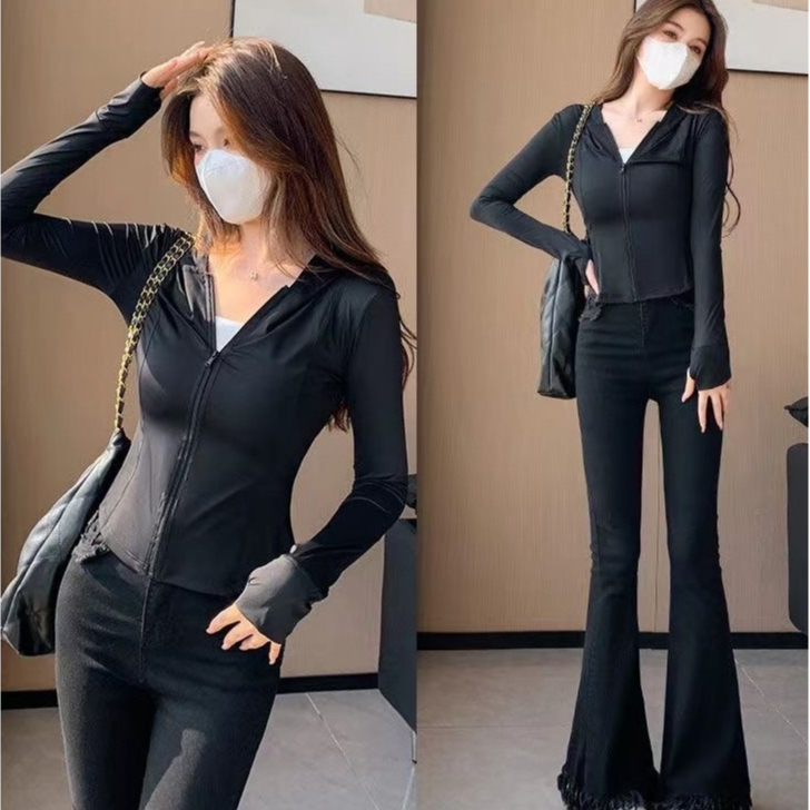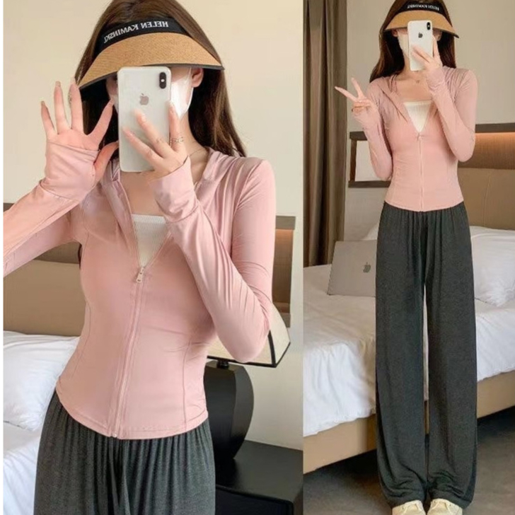 UMISO เสื้อฮู้ดกันแดด เสื้อคลุมกันแดด เสื้อเย็น ซิปปิดหน้า เสื้อกันยูวี UPF50+ เนื้อผ้าบางใส่สบาย