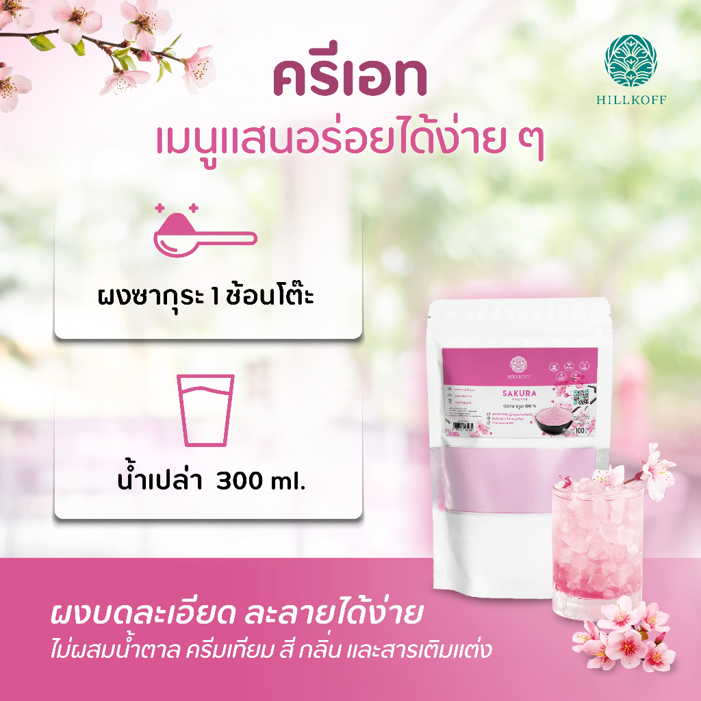 Hillkoff : ผงซากุระ 100% Sakura Powder ผงผลไม้ ผงผัก เพื่อสุขภาพ ขนาด 100 กรัม Sakura Cherry Blossom