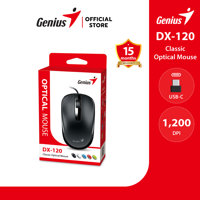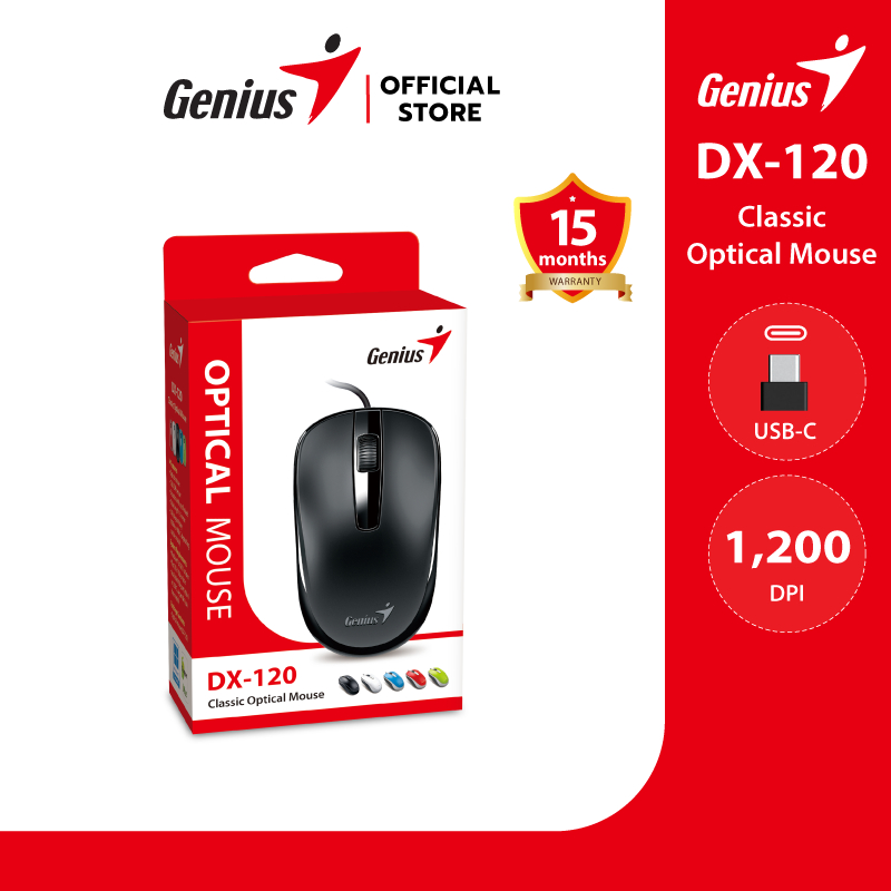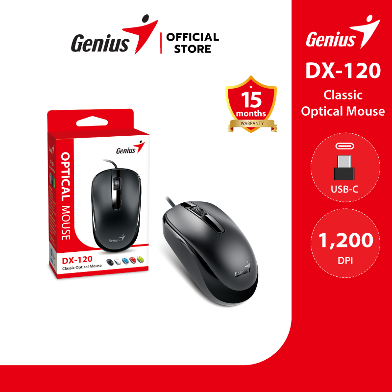 Genius Mouse DX‑120 USB‑C เมาส์ Optical 1000‑1200 DPI Full‑size Ambidextrous Plug‑and‑Play สายยาว 1.5 เมตร