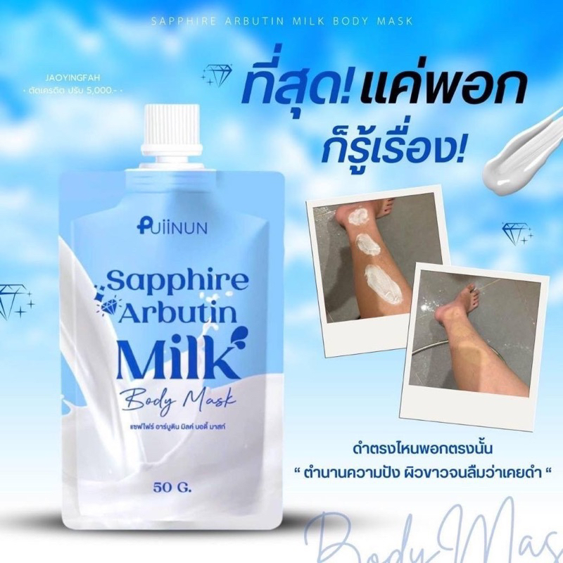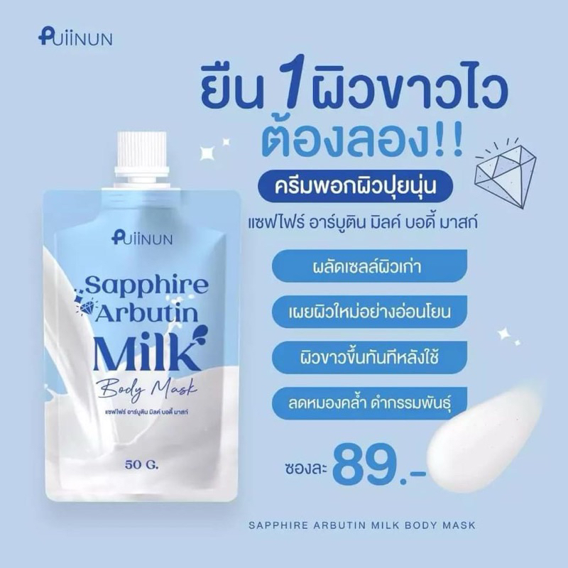 แท้💯% พอกผิวปุยนุ่น แบบซอง SAPPHIRE ARBUTIN แซฟไฟร์ อาร์บูติน PUIINUN ครีมพอกผิว ผิวขาว ผิวใส เรียบเนียน 50 กรัม