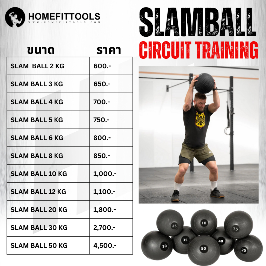 Slam Ball 2-30kg สแลมบอล ผิวเรียบ ลูกบอลทุ่ม ออกกำลังกาย บอลกำลังกายฟิตเนส Slamball - Homefittools