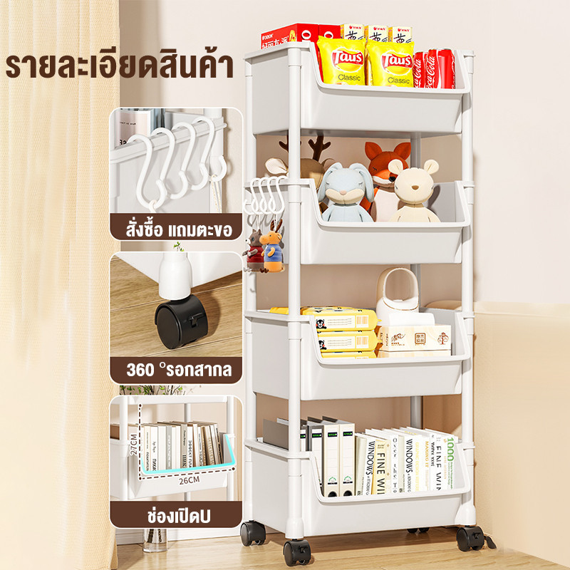 Wise ชั้นวางของพลาสติก ชั้นวางหนังสือ ชั้นวางของล้อเลื่อน ชั้นวางเอนกประสงค์ ในครัว 3/4/5ชั้นหนังสือ