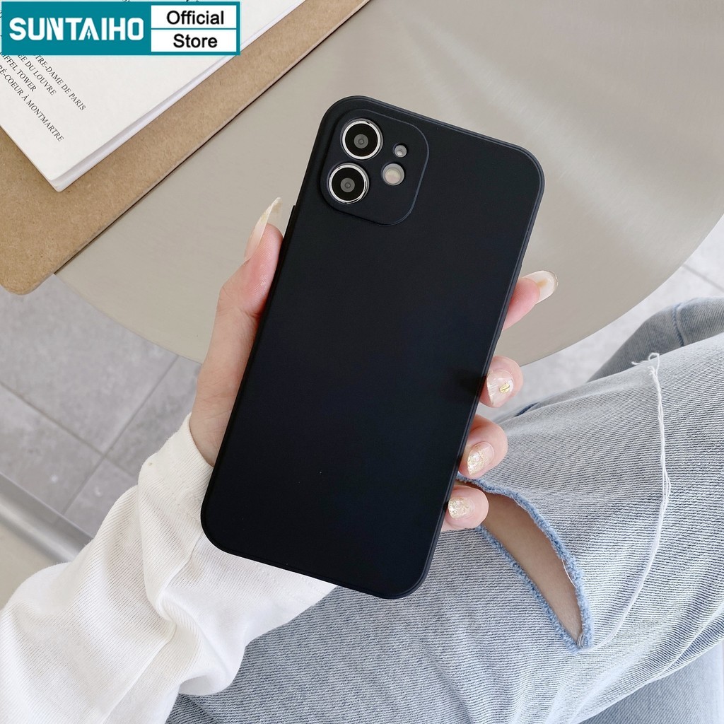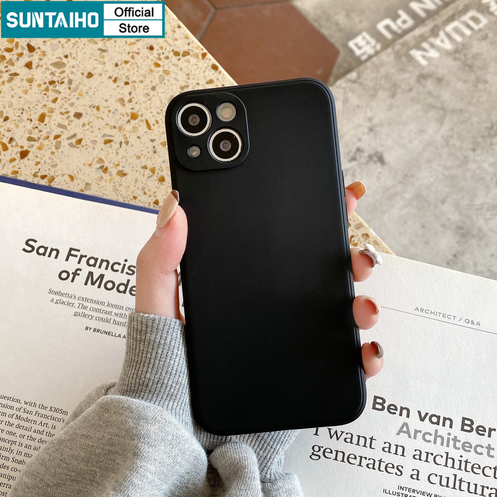 Suntaiho เคสไอโฟน แฟชั่นสีทึบสีดําซิลิคอนนุ่มกันกระแทกเคสโทรศัพท์สําหรับ iPhone 16 15 14 12 13 11 Pro Max IP 7 8 Plus Iphon X XS XR XsMax